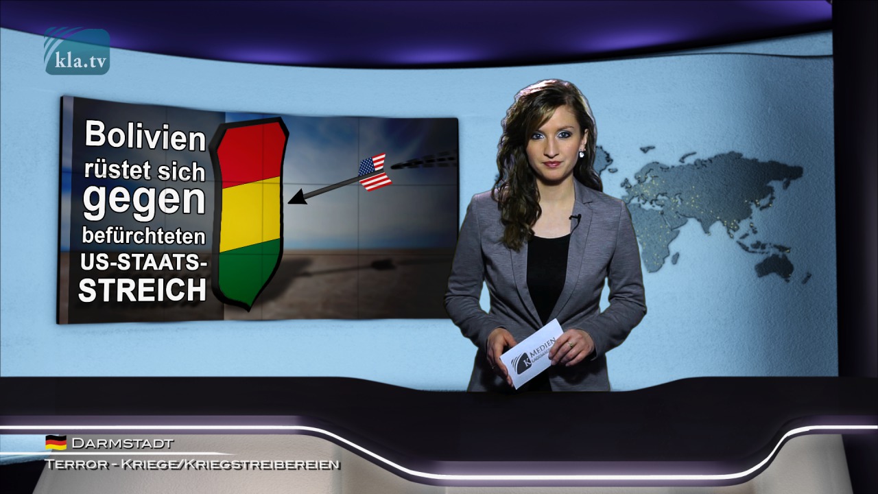 6 сентября 2016 года Российское агентство ТАСС сообщило, что Россия в срочном порядке отправляет 1.500 солдат спецназа в Боливию. Это было подписано и сразу воплощено в рамках соглашения о военном сотрудничестве между Российской Федерацией и Боливией. "Для нас Россия является братской страной, с которой нас связывают превосходные отношения", – сказал министр национальной обороны Боливии Рэйми Феррейра. Российский министр обороны Сергей Шойгу отметил, что Россия со своей стороны видит в Боливии многообещающего партнёра. Подоплёкой этой готовности Боливии к сотрудничеству с Россией является озабоченность, что Боливия, после Венесуэлы и Бразилии, может стать следующей страной, в которой США устроят беспорядки и переворот. Президент Боливии Эво Моралес через пять месяцев после своего избрания в 2006 году выполнил одно из своих главных обещаний, национализировав нефтегазовую промышленность. К тому же он запретил доступ иностранным концернам к полезным ископаемым Боливии. Аналогично действовала свергнутый президент Бразилии Дилма Русеф. И Русеф, вопреки давлению правительства и предприятий США, запретила глубоководную добычу нефти в Бразилии. Под руководством Русеф Бразилия, как и Боливия при Моралесе, всё больше сближалась с Россией. Это удаление от влияния США, в конечном счёте, стоило Русеф президентства, которое теперь занял Мишел Темер, бывший информатор американского правительства. Ввиду этих параллелей между Моралесом и Русеф, опасения Боливии вполне обоснованы. Дальнейшим признаком того, что в Боливии возможен скорый переворот, является высказывание бывшего советника президентаТрампа по национальной безопасности Майкла Флинна. В своей вышедшей в 2016 году книге „The Field of Fight“, на русском „Поле боя“, Флинн писал: „США находятся в состоянии мировой войны против радикальных исламистов и альянса государств: Иран, Сирия, Китай, Северная Корея, Куба, Никарагуа, Венесуэла и Боливия“. Далее он пишет: „Дипломатии будет недостаточно, чтобы разбить наших врагов. Нам необходимо действовать и на поле боя!“ Эта красная нить проходит через американскую внешнюю политику: как только правительство противостоит диктату США и отдаёт предподчтение собственному суверенитету, нежели интересам правительства США, в стране затеваются политические интриги и беспорядки, вплоть до силовых конфликтов. Таким образом свергают нежеланных государственных руководителей и сменяют их на лояльных по отношению к американскому правительству. С этой перспективы следует рассматривать развитие в таких латино-американских странах, как Боливия, Бразилия и Венесуэла, и раскрывать инициированные администрацией США госперевороты. Мы будем Вам благодарны за всякое указание на американские операции и их кукловодов, которые задумывают госпереворот!