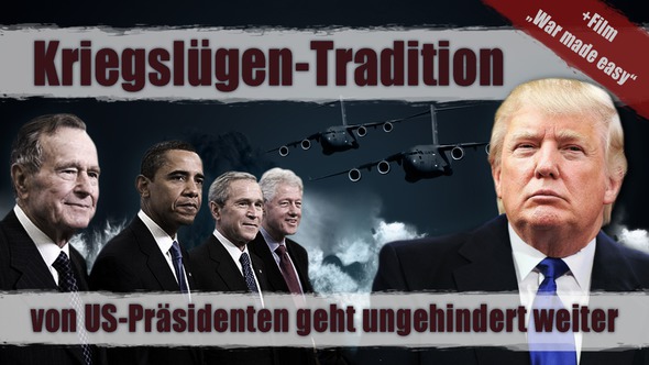 US-Präsident Trump hatte die Bombardierung auf einen syrischen Luftwaffenstützpunkt nur wenige Tage nach einem „mutmaßlichen Giftgasangriff“, der sofort der Assad-Regierung angelastet wurde, angeordnet. Auch die jüngsten Anschuldigungen gegen Assad und der Vorwand für das militärische Eingreifen der USA scheinen sich nahtlos in die Kriegslügen-Tradition von US-Präsidenten einzureihen. Eigentlich sollte dies seit dem erstmals 2007 erschienenen US-Dokumentarfilm „War made easy - Wenn Amerikas Präsidenten lügen“ in aller Munde sein. Wenn doch die Kriegslügen-Tradition von US-Präsidenten bekannt sein müsste – zumindest beim WDR und ZDF – warum werden dann die jüngsten Kriegsaktivitäten eines US-Präsidenten in keiner Weise hinterfragt?
