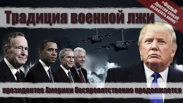 В ночь на 7 апреля 2017 года американские войска с кораблей в Средиземном море обстреляли 59 ракетами Томагавк сирийскую базу ВВС к югу от Хомса. По официальным данным, во время обстрела погибли девять человек. Другие источники сообщают о 14 жертвах обстрела, девять из которых были гражданскими лицами, в том числе дети, которые жили рядом с аэропортом. Как сообщается, уничтожены шесть самолетов, столовая, радиолокационная станция и другие здания промышленного назначения. Президент США Трамп отдал приказ об обстреле всего через несколько дней после «предположительной газовой атаки», в которой сразу же обвинили правительство Асада. Как сказал Трамп, снимки окоченевших тел детей произвели на него сильное впечатление и изменили его отношение к сирийской войне. Однако, информация о «предполагаемой газовой атаке» и изображения принадлежат исключительно одному, весьма сомнительному, совсем не нейтральному источнику, а именно, спасателям организации гражданской обороны «Белые каски». Подробности Вы найдёте в программах: «Предполагаемая газовая атака активизирует политиков и СМИ, подстрекающих к войне» (www.kla.tv/10245) и «Сирия: Предполагаемая газовая атака под ложным флагом – правительство США стремится к эскалации войны» (www.kla.tv/10258). В последней передаче канал Klagemauer.TV поднял следующий вопрос: «Как это возможно, что на основе таких сомнительных и криминальных источников, как Белые каски, оправдывают военные действия и идут на эскалацию сирийского конфликта вплоть до мировой войны? Также и недавние обвинения в адрес Асада и предлог для военного вмешательства Соединенных Штатов представляются непрерывным звеном в традиции военной лжи президентов Америки». «Традиция военной лжи президентов Америки?» Вы уже слышали об этом? Собственно говоря, это должно быть у всех на устах после впервые вышедшего в 2007 году в США документального фильма «Простой способ развязать войну – Если американские президенты лгут». Фильм основан на книге «War made easy» (на русском «Войну легко сделать») американского журналиста и критика военной политики США Нормана Соломона. В 2008 году этот фильм появился на немецком телеканале WDR, а в 2012 году его показали на «zdf.info». В превью было сказано буквально следующее: «Какими бы разными не были президенты США в последние 50 лет, но в одном они все были похожи. Все они были настоящими мастерами в искусстве лжи, когда хотели склонить свою собственную страну к войне. И их методы похожи друг на друга. Это «традиционное промывание мозгов» исследовал американский ученый Норман Соломон, а два кинодокументалиста Лоретта Алпер и Джереми Эрп рассказали об этом в удивительно впечатляющем фильме». Фильм «Простой способ развязать войну – Если американские президенты лгут» показывает, как войны, прямо-таки порождались президентами США. Ход событий всегда один и тот же: 1. Быстро развивающаяся, географически и политически важная страна объявляется «страной-мишенью». 2. Конформистские СМИ и политики порочат и демонизируют страну-мишень как непредсказуемую угрозу человечеству. 3. После того, как мировое сообщество настроено на войну со страной-мишенью и подготовлено к ней, ложью, или «Операцией под ложным флагом» оправдывается объявление войны или другие военные действия. 4. Но когда-нибудь, в какой-то момент, общественность всё же узнаёт, 
