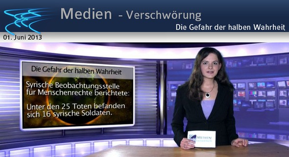 Im syrischen Krieg wurde am 19.3.2013 eine neue Eskalationsstufe erreicht. Die Massenmedien spekulierten sofort über einen möglichen Chemiewaffen-Einsatz ohne sagen zu können, wer ihn genau verübt habe. Laut der „syrischen Beobachtungsstelle für Menschenrechte,“ befanden sich unter den 25 Toten jedoch 16 Soldaten der syrischen Armee. In der ARD-Tagesschau vom 19.3.2013 um 20:00 Uhr bekam man dazu Folgendes zu hören: „Im Syrienkonflikt werfen sich Regierung und Rebellen vor, erstmals Chemiewaffen eingesetzt zu haben. In der Nähe von Aleppo starben mindestens 25 Menschen beim Einschlag einer mutmaßlichen Giftgasgranate, viele wurden verletzt ... US-Präsident Obama hatte im vergangenen Jahr von einer roten Linie gesprochen und mit einem Militäreinsatz in Syrien gedroht.“ Die Tatsache, dass viele Massenmedien nichts von den 16 toten Soldaten der syrischen Armee und damit der offensichtlichen Unschuld des Assad-Regimes berichten, ist erschreckend. Diese Darstellung könnte der USA und der NATO als Legitimation für einen Angriffskrieg gegen die syrische Regierung, zum angeblichen Schutz der syrischen Bevölkerung, dienen.