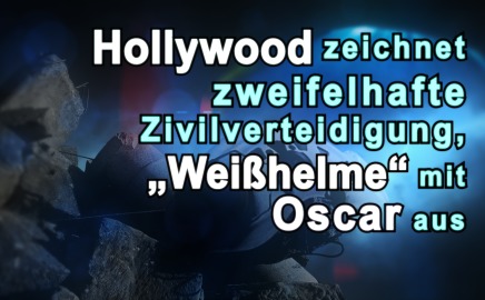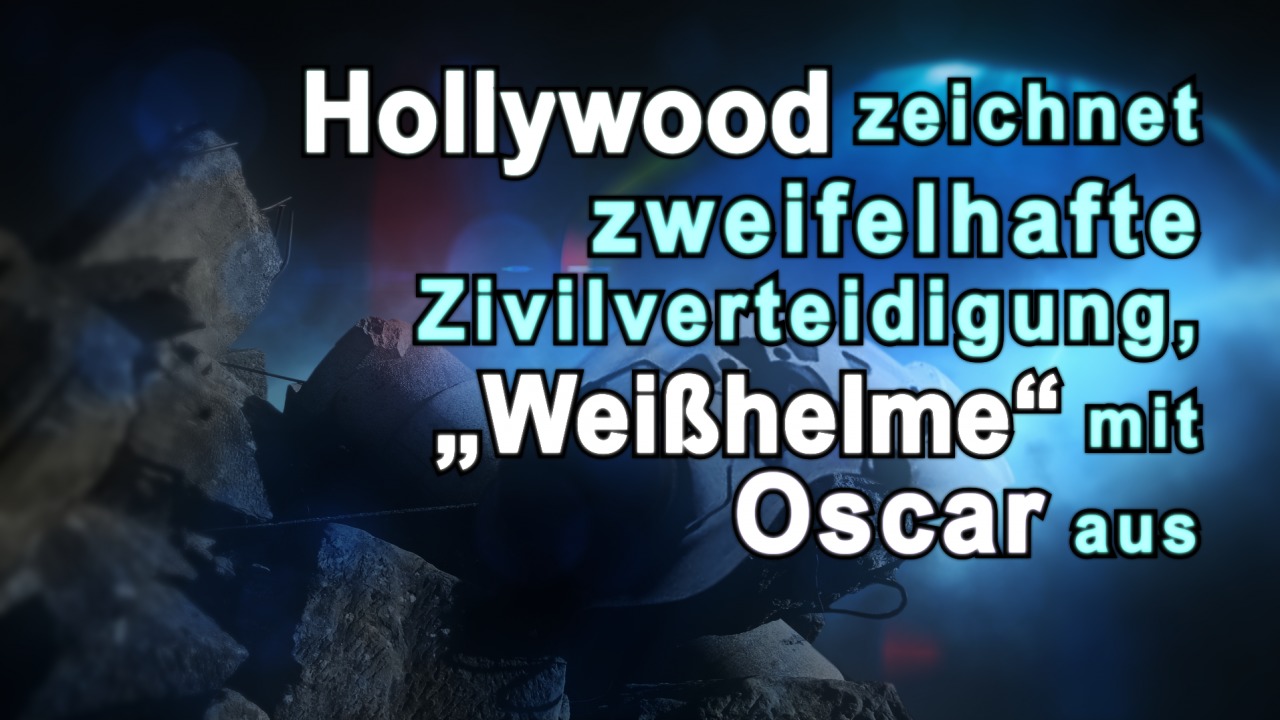 Am 26.2.2017 zeichnete Hollywood den Dokumentarfilm „The White Helmets“ mit einem Oscar aus. Dieser zeigt die angeblich neutrale Zivilverteidigung „White Helmets“ (Weißhelme), die den Opfern in Syrien hilft und stellt diese als Helden des Syrienkriegs dar. Diametral zu diesem Dokumentarfilm gibt es Fotos und Videos aus Syrien mit Mitgliedern der Weißhelme, die den Tod ziviler Regierungsangestellter feiern; Weißhelme, die einen Sieg der al-Qaida bejubeln und die schwarze IS-Fahne schwingen. Außerdem berichteten Augenzeugen des Kriegsgeschehens in Syrien, dass einige Filmszenen und Bilder, in denen Männer mit weißen Helmen Zivilisten retteten, gestellt waren. Auch würden die Weißhelme nur helfen, solange die Kamera der Reporter läuft und danach gleich wieder verschwinden. Die Menschen in den Trümmern würden sie einfach dem Tod überlassen.
