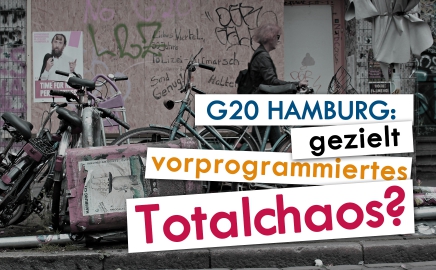 Vom 7. bis 8. Juli 2017 fand in Hamburg das zwölfte Gipfeltreffen (G20) statt. Für Schlagzeilen sorgten nicht die politischen Inhalte des Gipfels, sondern die gewalttätigen Ausschreitungen sowie das Vorgehen der Polizei. Vieles scheint darauf hinzudeuten, dass das „Totalchaos“ rund um den G20-Gipfel gezielt „heraufbeschworen“ wurde. Doch wozu?[weiterlesen]