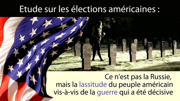 Pour sa défaite surprenante lors des élections présidencielles aux Etats-Unis en novembre 2016, Hillary Clinton a immédiatement rejeté la faute sur la Russie : Moscou aurait manipulé les élections. Par contre, une étude actuelle de chercheurs des universités américaines de Boston et du Minnesota aboutit à un résultat tout à fait différent : L'attitude d'Hillary Clinton, favorable à la guerre, a coûté à la Démocrate les votes décisifs parce qu'une grande partie du peuple américain serait devenue lasse de la guerre.