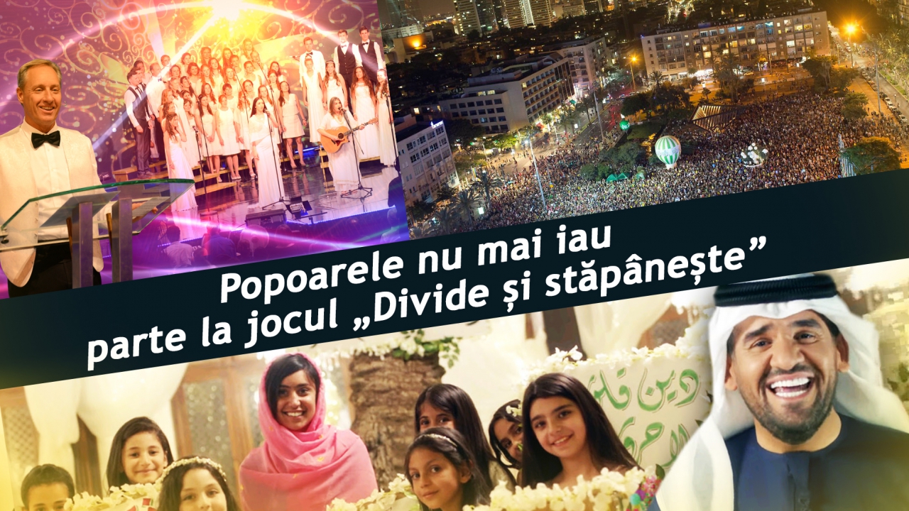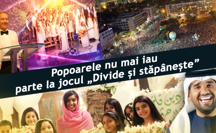 Popoarele nu mai iau parte la jocul „Divide și stăpânește” Străduințele serviciilor secrete, a guvernelor și vârfurilor de putere către o confruntare mondială sunt din ce în ce mai evidente. Principiul acesta de hărţuire reciprocă și de creare a unor imagini noi de dușmani a dat naștere la războaie fără sfârșit, distrugeri și vărsări de sânge. Însă de la bază, din popoare, începe să adie alt vânt. După cum primăvara înmuguresc pomii, popoarele sunt dispuse să termine cu tragedia „Divide și stăpânește”, care durează de secole. Ca un semn din cer, primăvara a adus pe plan mondial, trei muguri plini de speranță: 1. La sfârșitul lui mai s-au strâns în Elveția, la „Ziua Internațională a Prieteniei”, peste 3000 de oameni, la care reprezentanții unor categorii total opuse și-au exprimat stima reciproc. Creștini, musulmani și iudei, americani și ruși, ruși și ucrainieni, turci și curzi, negrii și albi, bătrâni și tineri și mulți alții! Decenii de dușmănie au fost rupte și națiunile și religiile au recunoscut reciproc că au nevoie una de alta. Tot evenimentul a fost tradus simultan în zece limbi și difuzat live în toată lumea. 2. Exact în aceeași zi au demonstrat mii de israeliți în Tel Aviv pentru o soluție de pace în conflictul cu palestinienii. Adunarea a fost coordonată de organizația „Pace acum”, care critică construcția unor noi cartiere evreieşti din zonele palestiniene. Demonstrația a avut loc „...împotriva disperării, care ne este acordată/oferită de guvern, ocupația, violența și rasismul care continuă”, exprimat de șeful organizației „Pace acum”, Avi Buskila. În timpul demonstrației a fost citită comunicarea președintelui palestinian, Mahmud Abbas: „Este timpul să trăim în pace, armonie, siguranță și stabilitate”. 3. Tot astfel, în ultimul weekend din mai, a fost publicat pe Youtube un videoclip în limba arabă, care până astăzi a primit de 6,5 milioane de vizualizări. În acest videoclip poporul musulman confruntă un terorist sinucigaş cu o curea de dinamită, spunându-i: Tu, care vii în numele morții, El (Dumnezeu) este Creatorul Vieții (...), roagă-te Dumnezeului tău cu dragoste, nu cu teroare! Confruntă dușmanul cu pace, nu cu război! Convinge pe alții cu toleranță, nu cu constrângere! Hai să bombardăm violența cu îndurare! Să bombardăm înșelăciunea cu adevărul! Să bombardăm ura cu dragoste! Când pe tot globul se pun în mișcare astfel de lucruri, se pot recunoaște puterile cerești, care declanşează în oameni o nouă conștiință de unitate și împăcare. Toate acestea se întâmplă la creștini, iudei și musulmani. Luaţi-vă și Dv. curaj şi putere din Trailerul „ Întâlnirii de Prieteni Internationale ” și din videoclipul arab. Distribuiţi mai departe linkul oamenilor din întreaga lume! A sosit timpul ca puterea dragostei să învingă ura și oamenii să realizeze că au nevoie unii de alții.