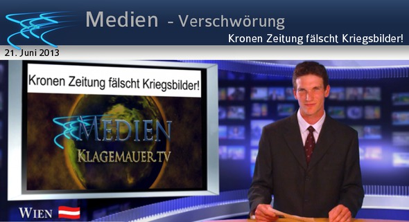 Die Kronen Zeitung ist die auflagenstärkste österreichische Boulevard-Tageszeitung. Mit knapp drei Millionen Lesern bei einer Bevölkerungszahl von etwa acht Millionen ist die Kronen Zeitung somit, gemessen an der Einwohnerzahl, eine der stärksten, erfolgreichsten und auch der einflussreichsten Zeitungen der Welt. Das hindert sie aber nicht daran, die Berichterstattung über Syrien, Libyen, Iran und Russland etc. zu fälschen. (Ein gewisser C. Hauenstein (!) tut sich da besonders hervor). In einem enthüllenden Fotovergleich wurde nachgewiesen, wie die Zeitung eine Aufnahme einer gehenden Familie nahm und den Hintergrund völlig veränderte. Das Original der Verfälschung stammt von der European Pressphoto Agency (EPA). In ihrer Zeitung erschien es hernach mit total zerstörten Gebäuden im Hintergrund. Dazu die verhetzerische Überschrift: „Assads Armee rollt mit Panzern zur »Mutter aller Schlachten«.“ Am Samstag den 28.7.12 erschienen: Und wer ahndet nun solche Bildfälscher und Volksverhetzer mit aller nötigen Strenge und Konsequenz?