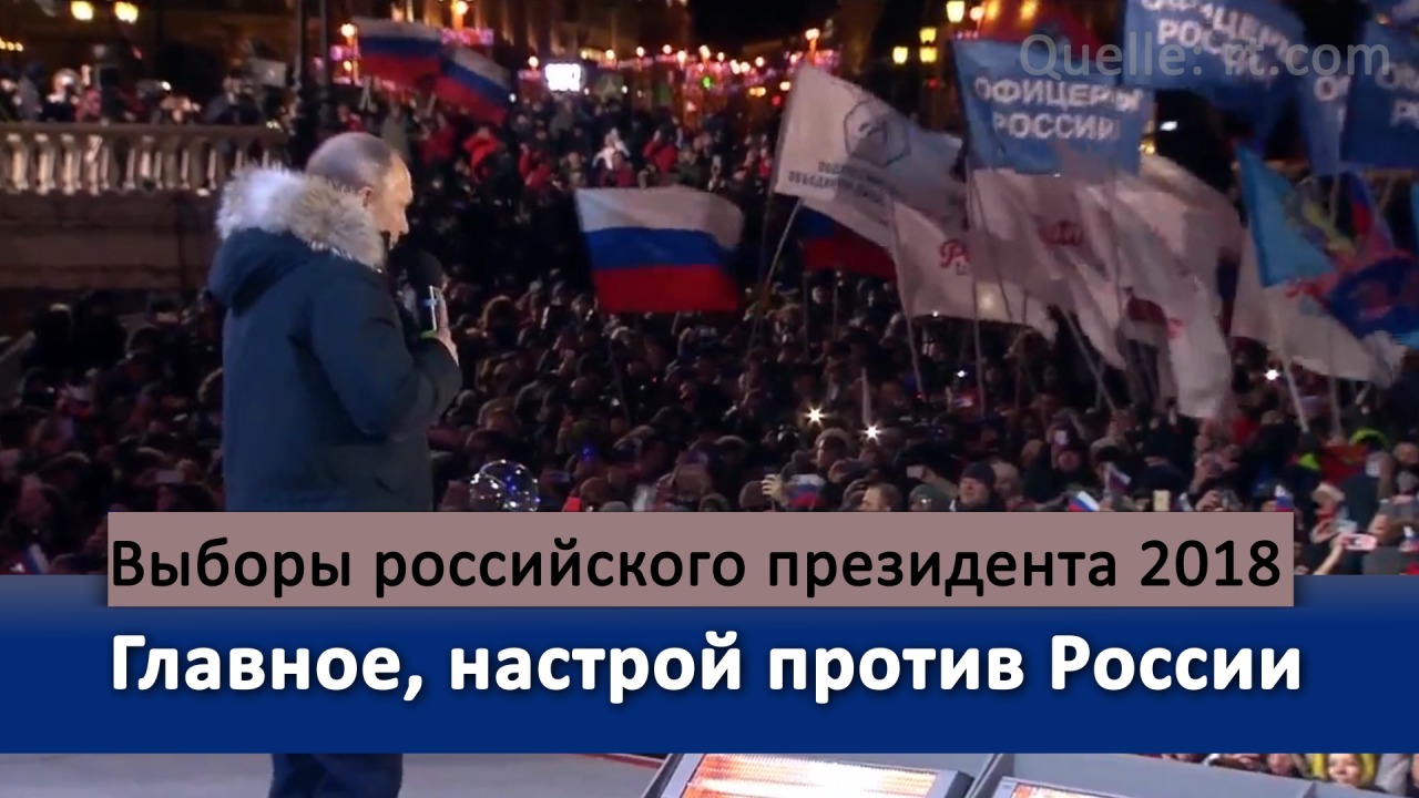 В воскресенье, 18 марта 2018 года в России прошли президентские выборы. По сообщениям избирательной комиссии, в понедельник, утром, занимающий пост президента Владимир Путин получил в итоге 76,7 процента голосов. Участие в выборах, согласно российской агентуре новостей ТАСС, составляло около 64 процентов. Западные системные СМИ теперь не перестают ставить ударение на том, что семь встречных кандидатов Путина считались не имеющими шансов, а единственный, бросающий вызов, „активист против коррупции“ (в кавычках) Алексей Навальный, который мог стать опасным руководителю страны, был исключён из участия в выборах. Для Klagemauer.TV, достаточным основанием является повтор передачи от 16 июня 2017 года, которая показывает Алексея Навального несколько в ином свете и выявляет, что это лишь очередной настрой против России …