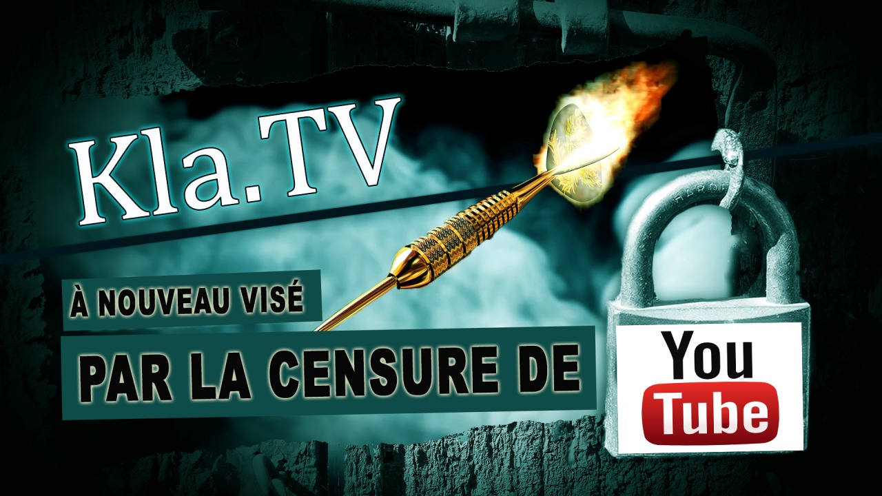 ouTube ferme le robinet des chaînes alternatives et des acteurs de dévoilement les plus importants de notre temps. Voici quelques exemples représentatifs d'innombrables blocages de comptes sur YouTube. Oliver Janich : (mars 2018) Vidéo sur l'explosion de la violence des migrants – CENSUREE YouTube a censuré ma dernière vidéo, ce qui veut dire qu'elle est bloquée, le compteur est éteint. » Werner Altnickel : (novembre 2017) « Clean Sky » canal YouTube complet supprimé « Je suis avec Werner Altnickel et ta chaîne YouTube vient d'être supprimée. J'ai déjà appris que certaines vidéos YouTube individuelles sont bloquées en Allemagne. Eh bien moi, je m’en sors encore relativement bien, mais chez toi, tout le canal a soudainement disparu – comment ça se fait ? (oui, oui). » Studio culturel (2017) « Kulturstudio1 » chaîne YouTube complète supprimée « Nous venons justement d'être bannis de YouTube ; jusqu'à présent nous n'avons pas encore reçu d’explication, nous n'avons même pas reçu d'e-mail. » Nuoviso (2017) Fonction permettant de faire de la publicité bloquée pour le canal YouTube « Nous avons reçu un courrier de YouTube ; il y est écrit... pas de publicité positive, donc ta vidéo ne peut pas être monétisée. […] YouTube l'a effectivement fait et a fermé tout le canal de notre chaîne de télévision Nuoviso. » D'autres témoignages de téléspectateurs confirment la suppression de divers canaux critiques du système, tels que :ALTerNATIVE INFO, « Der dritte Blickwinkel », « GermanDude » etc. etc. On ne dispose malheureusement pas de la liberté d'expression dans ce pays. Saviez-vous que près des deux tiers des 1 000 meilleures vidéos sur YouTube sont bloquées en Allemagne ? Saviez-vous que YouTube peut dissimuler au grand public des sujets critiques du système sans censurer directement la vidéo ? Par exemple par une mauvaise position délibérée sur la page YouTube, dans les résultats de recherche et les recommandations vidéo ? Saviez-vous que selon vos propres déclarations, YouTube peut temporairement ralentir ou geler le nombre de vues en dessous de la vidéo et même ignorer complètement l’accès à des vidéos prétendues « de basse qualité » ? Qu'est-ce que YouTube qualifie de « vidéo de basse qualité » ? Le nombre de visionnages de vidéos sur les canaux qui critiquent le système est-il correct ou les chiffres sont-ils délibérément manipulés pour cataloguer comme impopulaires les opinions alternatives et le journalisme d'investigation ? En 2014 la chaîne YouTube de Kla.TV a également été bloquée pendant deux semaines et elle est de nouveau en danger. Fin avril 2018 c’est de nouveau arrivé. Nous avons reçu un avertissement de YouTube au sujet d’entorses aux directives portant sur le harcèlement et l'intimidation. Une vidéo capitale a été bloquée sans plus attendre. Nous sommes menacés d’exclusion totale de YouTube s’il y a d’autres entorses à l’avenir. L’étau se resserre. Ces jours-ci, les abonnés de YouTube rapportent que, malgré leur abonnement, ils n’ont plus reçu de notifications automatiques de YouTube lorsque nous avons publié une nouvelle vidéo. Kla.TV est de retour dans le feu croisé de la censure sur Internet. Alors ne nous suivez pas seulement sur YouTube. Visitez le site original www.kla.tv régulièrement et abonnez-vous à notre newsletter sous www.kla.tv/news. Restez en contact avec nous, même en temps de crise ! Tant que c'est encore possible, nous resterons votre numéro 1 en matière de reportage non censuré.