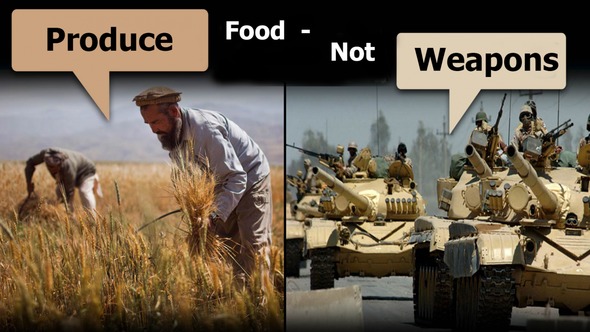 Saving one third of the military expenses would produce enough money for the starving people–not only for the delivery of food, but also for cultivating crops.