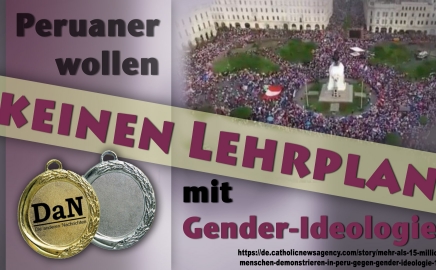 Trotz vielfacher Kritik wurde vom peruanischen Bildungsministerium Ende 2016 ein neuer Lehrplan mit integrierter Gender-Ideologie für 2017 genehmigt. Im März 2017 organisierten Eltern, Lehrerverbände und die katholische Kirche Protestmärsche unter dem Motto „Hände weg von meinen Kindern“. Rund 1,5 Millionen Menschen nahmen an den Demonstrationen teil. Die monatelangen Proteste waren erfolgreich. Im November 2017 wurde vom Bildungsministerium bekanntgegeben, dass der alte Lehrplan von 2009, ohne Gender-Ideologie-Inhalte, wieder eingesetzt werden soll. Dieser von der Protestbewegung erzielte Erfolg könnte ein Ansporn für viele werden, die dem Einzug der Gender-Ideologie an den Schulen nicht einfach tatenlos zusehen wollen.
