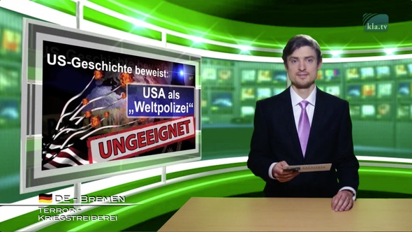 Da tanto tempo degli strateghi statunitensi della globalizzazione lavorano alla realizzazione di un “secolo americano”, un “nuovo ordine mondiale” sotto il predominio statunitense. Ma lo sviluppo dell’auto-nominata “polizia mondiale” non è distinto da una politica legittima e una guida responsabile. Questo lo mostra con chiarezza uno sguardo sugli ultimi 240 anni della storia statunitense: dalla fondazione degli Stati Uniti d’America nel 1776 non passò neanche un decennio nel quale gli USA non condussero una guerra. In 219 di questi 240 anni, vale a dire il 91% del tempo, si sono trovati in guerra aperta con altri paesi. Mentre i primi 120 anni erano soprattutto plasmati dalle guerre indiane, nei seguenti 120 anni passò alla normalità lo stato di guerra internazionale. Confrontando il lasso di tempo, nessun altro stato al mondo ha mai condotto anche solo approssimativamente tante guerre e provocato tanto caos quanto gli USA. Il bilancio di un poliziotto internazionale convincente, che procura ordine e sicurezza, sarebbe sicuramente diverso. Per la pace mondiale è necessaria l’immediata interruzione delle guerre statunitensi e la riabilitazione dei popoli danneggiati – cominciando dagli indigeni del Nordamerica.