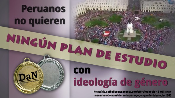 Peruanos no quieren un plan de estudio con ideología de género A pesar de muchas críticas, el Ministerio de Educación peruano aprobó un nuevo plan de estudios con ideología de género integrada para 2017 a finales de 2016. En marzo de 2017, las asociaciones de padres, profesores y la Iglesia Católica organizaron marchas de protesta bajo el lema "Con mis hijos no te metas". Alrededor de 1,5 millones de personas participaron en las manifestaciones. Los meses de protestas fueron exitosos. En noviembre de 2017, el Ministerio de Educación anunció que el antiguo plan de estudios de 2009 se restablecería sin el contenido de la ideología de género. Este éxito logrado por el movimiento de protesta podría ser un incentivo para muchos que no quieren simplemente quedarse mirando la introducción de la ideología de género en las escuelas.