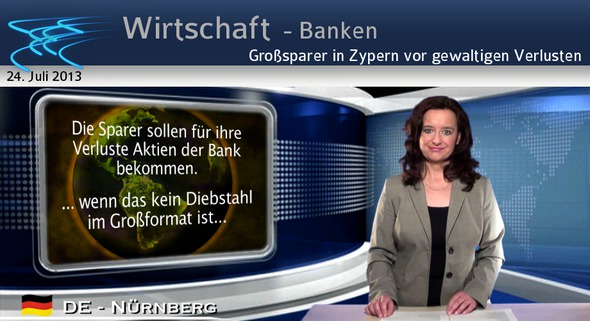 Die Sparer der Bank of Cyprus mit einem Vermögen von mehr als 100.000 Euro müssen mit heftigen Verlusten rechnen. Denn oberhalb dieser geschützten Summe droht bei jedem weiteren Euro eine Zwangsabgabe von bis zu 60 Prozent. Laut Finanzminister Michalis Sarris werden Vermögende in einem ersten Schritt mit 37,5 Prozent ihrer Einlagen oberhalb der 100.000-Euro-Grenze zur Kasse gebeten. Wer beispielsweise 200.000 Euro bei der Bank of Cyprus hat, dem bleiben 100.000 Euro sicher. Auf die verbleibenden 100.000 Euro wird nun laut Sarris eine erste Zwangsabgabe von 37,5 Prozent – also 37.500 Euro – erhoben. Weitere 22.500 Euro würden beiseite gelegt. Falls die Bank of Cyprus noch mehr Geld zur Rettung benötige, werde man auch diese 22,5 Prozent nehmen. Die Sparer sollen für ihre Verluste Aktien der Bank bekommen. Nun, wenn das kein Diebstahl im Großformat ist ...