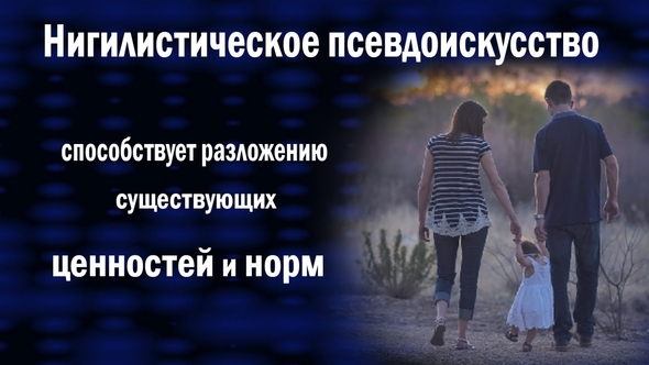 Становится ясным, как целенаправленно используется нигилистическое «псевдоискусство», – и не только для того, чтобы постепенно размыть традиционное представление о семье, но, кроме того, ещё и разрушить все без исключения морально-этические ценности и нормы нашего общества.