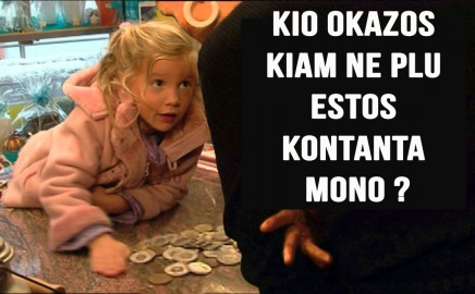 Kio okazos kiam ne plu estos kontanta mono ? Montru al mi vian manon ! Vi povas diri al Panjo, ke ŝi nepre metigu al vi elektronikan blaton. Ĝis revido ! Kion vi volas ? Ĉu mi povas havi iom da lakto ? Nuntempe, oni ne plu povas fari tion… tute malbone. Bovineto, ĉu vi donos al mi iom da lakto ? Ne estu tia, la estonteco de niaj infanoj. Haltigu la elektronikan blaton !