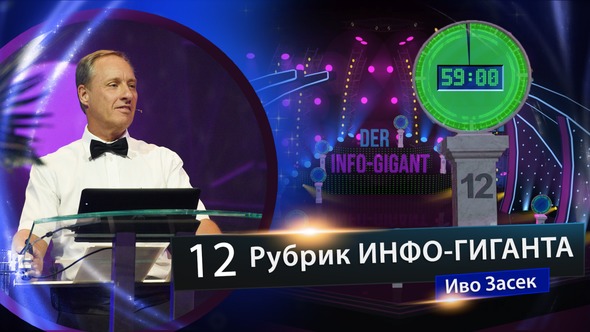 Население нуждается в информации, особенно в отношении цензурированных, подавленных и скрытных тем. Но где взять время для чтения и записи? «Инфо-гигант» - так называется новый формат вещания на kla.tv - в этом помогает! Какому информатору удается обобщить обширную тему всего за одну минуту? Лично Иво Засек, основатель kla.tv, демонстрирует, что это возможно! По каждой из 12-ти тем на kla.tv он представляет взрывоопасную информацию менее чем за минуту. Кто будет следующим на ринге и докажет способность проникнуть в суть фактов?