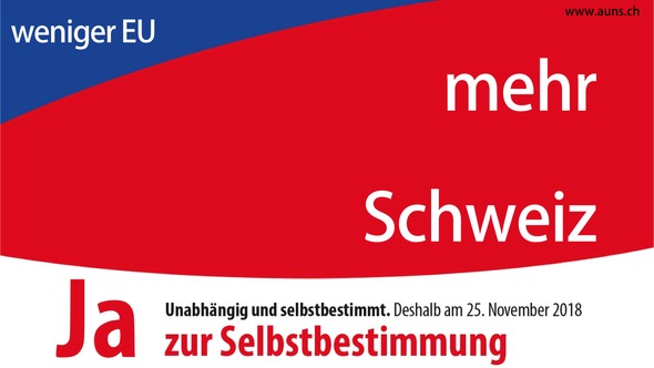 Am 25. November 2018 stimmt das Schweizer Stimmvolk über die Selbstbestimmungsinitiative – „Schweizer Recht statt fremde Richter“ – ab. Das bewährte Schweizer System der direkten Demokratie wurde nämlich in den letzten Jahren immer mehr von internationalen Verträgen, v.a. mit der EU, unterwandert und ausgehebelt. Bei der Abstimmung geht es um die radikale Grundsatzfrage: Sagt die EU, wie die Schweiz zu funktionieren hat, oder bleibt weiterhin der Souverän – also das Schweizer Volk – der Chef in seinem Haus?