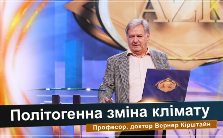 (Голос за кадром): Професор, доктор Вернер Кірштайн народився у 1946 році. Його кар'єра: у 1972 р. закінчив вечірню гімназію у м. Вюрцбург, потім вивчення фізики та географії в університеті Вюрцбурга з суміжними предметами – геологією, метеорологією та мінералогією. Закінчив факультет фізики, теоретичної термодинаміки і фізичної географії в кліматології. Наукова діяльність у дослідницькому центрі, різні роботи і публікації на тему регіональної та глобальної зміни клімату. У 1981 р. отримав докторський титул. Тема докторської дисертації: «Частота кореляції між сонячною активністю і елементами клімату». У 1992 р. отримав право на викладання в коледжах і університетах. У 1997 р. був запрошений до університету м. Лейпциг на посаду професора географії та геоінформатики. Він читав лекції з фізичної географії та кліматології, особливо з питань глобальних змін. Тобто глобальні процеси зміни розвитку клімату на землі. Видає різні публікації з області зміни клімату, в яких він опрацьовує зв'язок між кліматом землі, глобальним потеплінням і СО2 з абсолютно іншої точки зору, ніж це робить пануюча кліматична політика нинішнього часу. В останні роки він неодноразово виступав на публічних семінарах з лекціями по, так званій антропогенній зміні клімату. Професор, доктор Вернер Кірштайн, досвідчений кліматолог, говорить сьогодні на тему: «Політогенна зміна клімату».