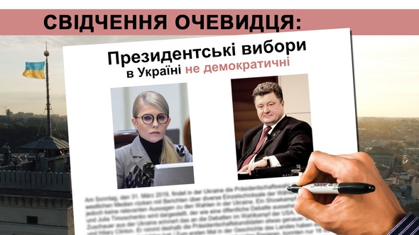 тільки за п’ять років зросла у понад 80 разів. І оскільки через це Порошенко не впевнений у своїй популярності серед збіднілого населення, він надіється на хабарництво та пропаганду. В соціальних мережах активно працюють цілі армії проплачених блогерів (їх називають «порохоботами»), які співають йому хвалебні гімни, підкреслюють позитивні сторони й затушовують негативні. Підвищення пенсій до виборів – це класика усіх українських виборчих кампаній останніх десятиліть. Порошенко також використовує цей метод і не соромиться очевидного хабарництва, що навряд чи було можливим при колишньому «режимі». Порошенко й надалі володіє 5-тим каналом – одним із найбільших телеканалів країни. Торік Порошенко в переважну більшість місцевих виборчих комісій та в Центральну виборчу комісію набрав своїх людей. Тому й не дивно, що Центральна виборча комісія відмовилась закупити визначені транспортні бокси для виборчих бюлетенів. Я вважаю, що для фальсифікованого підрахунку голосів майже немає перешкод. У лютому тисячі людей у всій країні працювали на Порошенко. За письмову згоду проголосувати за нього 31.03 вони отримали 1000-2000 гривень [1000 гривень – це приблизно 32 євро, середньомісячна зарплата у країні при цьому складає 305 євро]. Виникали такі черги, що не обходилось без втручання поліції. І для кандидатів другого туру, наприклад, таких, як Юрій Бойко, колишній член партії президента В.Януковича, Порошенко знайде рішення, щоб їх нейтралізувати. На початку 2015 року Бойко, який виступав за припинення війни на Донбасі, звинуватив владу України у відсутності будь-якої зацікавленості в мирному врегулюванні конфлікту на сході України. Зараз у нього були б гарні шанси на перемогу, якщо б опозиція не розділилась. Окрім того, є ще двоє менш відомих кандидатів із регіону, яким, подейкують, Порошенко та його олігархи заплатили, щоб переманити потенційних виборців Бойко. Необов’язково бути пророком, щоб передбачити, що Порошенко найгіршими методами придушить своїх конкурентів. Тим більше важливо уважно спостерігати за виборами в Україні 31 березня».