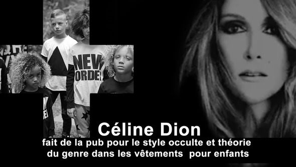Il est intéressant de noter que le programme de « Celinununu » n'inclut pas seulement la neutralité sexuelle, mais que le film publicitaire de la campagne est aussi profondément imprégné d'une idéologie occulte. Céline Dion se faufile de nuit jusqu'à un dortoir de nourrissons et y découvre quelque chose d’apparemment inacceptable : des bébés vêtus de pyjamas roses et bleus. Elle souffle de la poudre noire, tout change et devient sombre. Les bébés portent maintenant des bonnets avec des têtes de morts et des pyjamas sur lesquels il est écrit « New Order » c’est-à-dire « Nouvel Ordre ». Une photo sur le site web de la marque « nununu », montre ce qu’elle entend par « Nouvel Ordre ». On y voit un enfant dont le visage est entouré par des mains squelettiques – c'est-à-dire par la mort elle-même – cachant un œil de l'enfant. « Nununu » est de toute évidence animée par une idéologie extrêmement douteuse. De plus, la mode est conçue d'une manière suspecte, ce qui, outre les nombreux symboles occultes sur les vêtements, indique également des manœuvres pédophiles. Par exemple, le t-shirt d'une petite fille porte l'inscription « Ho ! », qui est un terme argotique bien connu pour désigner une putain. Deux enfants ont également été photographiés sous l’enseigne « Let's get physical » (en français : passons à l’étape physique) sachant que la chanson du même titre parle de sexe.