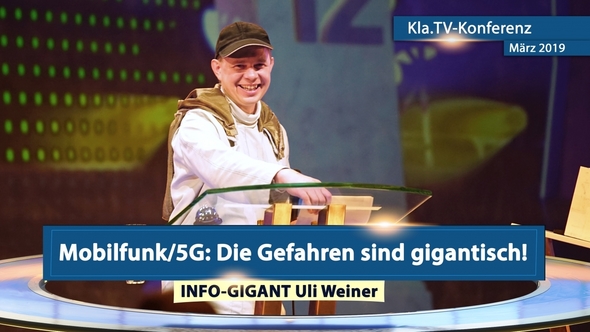Grāmatu taisīšanai nav gala, kā arī tās varas elites, apslēptās sazvērestības, slepenie plāni- tie nav tikai aizraujoši kriminālromāni. Te augstākās klases informatori atklāj aktuālos pasaules notikumus. Tie ir visdrosmīgākie cilvēki, kas bezbailīgi atklāj nebūšanas, neskatoties uz personiskajiem zaudējumiem. Tie ir šī laika varoņi. Taču no kurienes tauta lai ņem laiku izlasīt visas tās grāmatas? No kurienes lai visi iesaistītie cilvēki ņem laiku, lai klausītos garos referātus? To ir simtiem! Kur, lai nospiestā tauta, ņem laiku, jo visi tā skrien pārlieku garā darba laika dēļ vāveres ritenī, jo tai ir jācīnās par savu eksistenci? Un kā lai pārstrādājusies tautas masa savu pēdējo atpūtas laiku noņemtos ar negatīvajām ziņām un grūti sagremojamām tēmām, lai pie tam vēl nepazaudētu visu drosmi? Taču, ja tauta netiks informēta, ja tauta nezinās, kas par lietu un netiks visaptveroši apgaismota, tad arī tūkstoš gados nekas neizmainīsies. Modernā verdzība nebeigsies, tā tikai pastiprināsies. Izdevumi palielināsies un elites kļūs arvien nekaunīgākas, jo tās sev atļaujas vienkārši visu, līdz pat visbrutālākajām tautu slepkavošanām. Kāds te ir risinājums? Kā visai, šai eksistenciāli svarīgajai informācijai, nonākt līdz tautai un kā šais plūdos nenoslīkt? Ivo Saseks, kas ar saviem tv kanāliem jau kustina miljonus, rada te risinājumu. Viņš kla.tv uzsāk jaunu raidījumu formātu- izklaides raidījums, un tam viņš meklē info gigantus. Tiek pārbaudīti grāmatu autori, referenti, visu veidu izskaidrotāji, kurš informētājs kādu plašu tematiku, kuras iepazīšanai tautai vajadzētu ziedot daudzas stundas, satver tikai vienā minūtē. Kas ar to tiek galā, tas tiek kronēts par info gigantu. Šis referents, šis info gigants ir komunikāciju elektroniķis ar radio tehnikas novirzienu un telekomunikāciju padomnieks. Tātad, skaidrs, viņš ir profesionālis. Šai personai 2002. gadā parādījās arvien vairāk pieaugoši koncentrācijas traucējumi- reiboņi, sirds ritma traucējumi un redzes traucējumi, un viņš sabruka. Kopš tā laika šī persona dzīvo mežā. Un tā, šodien kā info gigants uzstājas neviens cits kā Uli Vainers. Sveiks! Uli, super, ka tu šodien esi te! Es ļoti priecājos un domāju, ka arī visi šeit, jo tu taču esi viens no vispazīstamākajiem apgaismotājiem šajā jomā. Mēs ļoti priecājamies, ka tu šeit esi, bet tev tas kaut ko arī maksā, atrasties šajā apstarojumā. Ļoti jauki, Uli. Nu tu te stāvi, šī izaicinājuma priekšā. Tas nav viegli. Punkts viens. Tas ies. Pirmais- ko saprot ar vārdu mobilais telefons, un kur slēpjas tam radniecīgās tehnoloģijas? Kad domā par mobilo telefonu, tad parasti iztēlojas mobilos torņus un iespējams vēl domā par smart phone, bet bez tā ir arī slēptās iekārtas pie ielu lampām, baznīcas kokos un citur, taču vēl problemātiskākas ir slēptās iekārtas mājsaimniecībā un birojos, kas tāpat raida 24 stundas dienā, un, atrodoties ciešā tuvumā, rada ļoti lielu apstarojuma devu, jo vienmēr izšķirošais ir tas, kas ienāk cilvēkā nevis raidītāja jauda. Tā WLAN un DEC bezvadu telefoni rada vislielāko apstarojuma piesārņojumu mājsaimniecībā, jo tie kā likums, strādā nepārtraukti 24 stundas dienā. Uzmanību! Tie ir nepārtrauktie starojumi. tiem ļoti cieši seko smart phone, ar nepārtrauktu datu pārraidīšanas iekārtu, tālāk seko iekārtas bluetooth, ar iebūvējamo WLAN, piemēram, televizorā, skaņu sistēmās, modernajās veļas mašīnās, ledusskapjos, kafijas automātos, printeros, baby rācijās un citur. Piedevām arī smart phone sensoros un modernajās mašīnās ir iebūvēti šie raidītāji, kuri obligāti ir jāizslēdz. Kas grib uzlabot pasauli, tas lai iesāk pats ar savu māju, un izmet pats savus personīgos mobilos torņus! "Uli! Tik saspiesti un vērtīgi! Tātad, nost ar mobilajiem torņiem savā mājā! Mēs to varam! Es ticu, ka ar to mēs sāksim! Ok, ejam tālāk uz otro rubriku." Otrais- kādi veselības traucējumi var rasties caur mobilā telefona izstarojumu? Cilvēka organisms funkcionē caur daudziem elektriskiem elektromagnētiski regulējošiem vadīšanas procesiem, tādēļ tas ir ļoti jūtīgs uz pretošanās iespējām ilgstošai radio apstarošanai no ārpuses. Vadošie zinātnieki un pētnieki saka, kas saprot elektromagnētismu, tas saprot arī dzīvību. Ķermeņa pirmie brīdinājuma signāli tiek uzsvērti bieži kā nekaitīgi- galvassāpes, miega traucējumi, locītavu sāpes, liels nogurums, reiboņi, augsts asinsspiediens, apetītes trūkums, koncentrācijas traucējumi, līdzsvara traucējumi, paaugstināts asinsspiediens, muskuļu, muguras un nervu sāpes, vilka apetīte. Ja šīs agrīnās pazīmes tiek ignorētas, rodas noturīgas sekas, organisma vides skābums, brīvo radikāļu veidošanās, mitohondrija, nespēks, eritrocītu salipšana, kalciju izvadīšana no šūnām, atveres smadzeņu asins barjera, CNS traucējumi, enerģijas zudums, alerģijas, pārtikas produktu nepanesamība, diabēts, sirdsdarbības izmaiņas, sirds ritma traucējumi, redzes pasliktināšanās, tinuss, depresija, alerģijas bernaut elektrosensibilitāte, masīvie smadzeņu bojājumi, šūnas sabrukšana, DNS plīsumi, tromboze, sirdstrieka, alcheimers, demence, smadzeņu audzēji, vēzis. Nav neviena cita tāda vides piesārņojuma kā šis- 24h dienā, 7 diena nedēļā, 365 dienas gadā. Teritoriju noklājošais un cilvēkiem iedarbīgais mobilā telefona starojums, kas cilvēkiem ir kļuvis par vislielāko veselības kaitējumu. Bet, neskatoties uz to, politiķi un mobilā industrija apgalvo, ka tas esot veselībai nekaitīgs. "O, un vēl, es zinu, ka tev ir lielas rūpes par bērniem, vai ne?" "Absolūti! Man bērni ir pirmajā vietā." "Es zinu. Un nākamais jautājums būs tieši par to." "OK." Trešais- kā mobilais tel