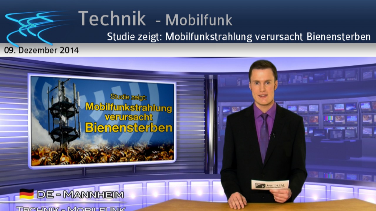 Óla e bem vindos à klagemauer.tv. Hoje no estúdio de Mannheim. Hoje falaremos sobre o tema que abrange a todos sem excessão e isso é radiação de telemóveis. Em um estudo científico com quatro colmeias, pesquisadores indianos observaram uma alta sensibilidade das abelhas melíferas na radiação de rádio móvel. Dois telemóveis foram ligados a cada lado de duas colmeias. Duas vezes por dia estavam ligados durante quinze minutos. Na terceira colmeia só foram ligados imitações de telemóveis. Nada estava ligado na quarta colmeia. Após 90 dias, as duas colónias de abelhas irradiadas foram claramente reduzidas e a produção de mel cessou completamente. As rainhas colocam em média apenas 145 ovos por dia, em comparação com contra colmeia eram 376. As abelhas de trabalho erravam desorientadas ao redor na colmeia. Quando saíam da colmeia raramente regressavam. No final da experiência não havia nem pólen, nem mel, nem criação ou abelhas nestas colmeias. Quando é que a expansão desta tecnologia de rádio móvel será finalmente interrompida? Só há uma que os pode deter: as pessoas! Por isso é que elas se tornam activas em conjunto connosco - porque agora isso depende do facto de cada cidadão assumir a sua responsabilidade com maturidade. Contamos contigo!