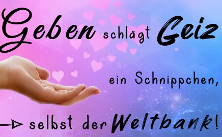 Der Internationale Währungsfonds IWF, Zweig der Weltbank, vergibt seine Kredite an arme Länder nur gegen umfassende Zugeständnisse. Die Länder müssen ihre Ressourcen wie Bodenschätze, Wasservorkommen, Landflächen, Infrastruktur usw. dem Zugriff internationaler Großkonzerne preisgeben. So gelangt beinahe sämtliches nationales Volksvermögen in die Hände weniger ausländischer Großkonzerne; die Bevölkerung des Landes geht nahezu leer aus. Sie kann sich bestenfalls als billige Arbeitskraft den Konzernen anbieten. Und das im eigenen Land. So geht die Schere weltweit zwischen reich und arm immer weiter auseinander. Wer viel Geld hat, ist geneigt, immer mehr Geld an sich zu raffen. Doch es geht auch ganz anders wie am Beispiel von Mason Wartman zu sehen ist. Wartman, vormals erfolgreicher Wall Street Manager, erkannte, dass Geldverdienen allein keinen Lebenssinn ergibt und richtete sich daraufhin auf Gemeinnützigkeiten aus: Großherzige Kunden finanzieren uneigennützig Mahlzeiten vor, die Wartman in seinem Gastronomiebetrieb produziert und jede Woche an hunderte Obdachlose gratis weitergibt. Und noch ein weiteres Beispiel das Schule macht: Mitgründer und Geschäftsführer von Gravity Payments Dan Price hat sein Gehalt von 1 Million auf 70.000 Dollar pro Jahr drastisch gekürzt und mit seinen 120 Mitarbeitern geteilt, sodass jeder dasselbe Jahreseinkommen bekommt. Dan Price bemerkte, dass sich dadurch seine Lebensfreude immens gesteigert hat. Sein Beispiel hat mittlerweile viele Geschäftsleute zur Nachahmung angeregt. Wer oder was genau hindert die Weltbank, es genauso zu machen? Die Erkenntnis von Goethe: Der Mensch sei edel, hilfreich und gut (weil er so ist) – wird entgegen aller niederziehenden Kräfte wiederentdeckt. „Viel Kälte ist unter den Menschen, weil wir nicht wagen, uns so herzlich zu geben, wie wir sind.“ Albert Schweitzer, deutsch-französischer Arzt, Philosoph, Theologe, Musikwissenschaftler und Pazifist