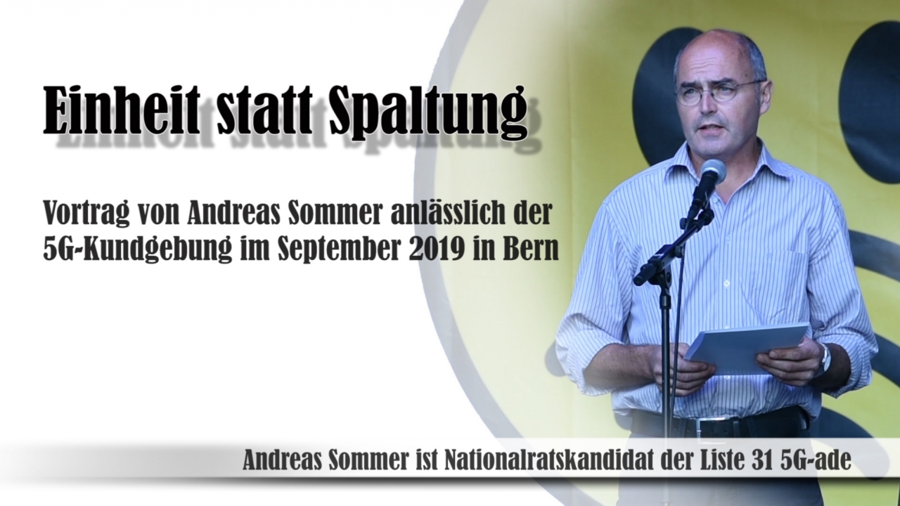 Anlässlich der zweiten „Stop 5G“ Kundgebung in Bern (Schweiz) erläutert der Nationalratskandidat Andreas Sommer von der Liste „5G ade!“, auf was es aus seiner Sicht ankommt, um 5G zu stoppen. Weiter zeigt er Möglichkeiten auf, wie durch das Verhalten jedes Einzelnen, die Mobilfunkbranche geschwächt werden kann.