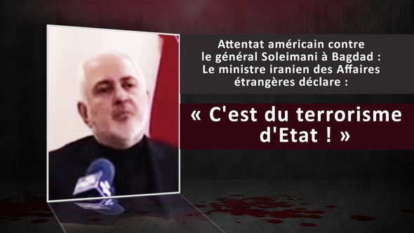 Le ministre iranien des Affaires étrangères, Mohammad Javad Zarif, condamne les attaques de missiles américains à l'aéroport international de Bagdad le 3 janvier 2020, lors desquelles l'un des principaux généraux iraniens, Qassem Soleimani, a été tué.