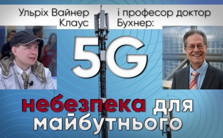 На ток-шоу в будівлі Open Studio ЄС у Брюсселі Дітер Германс, телеведучий некомерційної інформаційної платформи NRW-tv, та двоє запрошених ним експертів, спілкуються на тему: 5G – небезпека для майбутнього. Одним із експертів є німецький фахівець з мобільного зв’язку Ульріх Вайнер. Політики, ЗМІ та промисловість обіцяють, що технологія 5G принесе величезну користь. Але німецький фізик і депутат Європарламенту від Екологічної демократичної партії ÖDP, професор д-р Бухнер, який також був запрошений в якості експерта, відноситься до цього критично. Обговорюється велика небезпека для здоров'я, яка пов'язана із сумнівно встановленим і фіксованим граничним значенням. Також обговорюється питання про збільшення випромінювання. Крім того, обговорюється так зване формування променя (Beamforming). Сюди відноситься повний моніторинг і контроль. Також, обговорюватимуться багато інших тем, пов'язаних з 5G: альтернативи та практичні шляхи виходу з ситуації, яка склалася. Представники мобільних технологій, на жаль, не прийняли запрошення на зустріч. А тепер ви можете подивитися обґрунтовані пояснення Ульріха Вайнера та професора доктора Клауса Бухнера у 60-хвилинному відеофільмі. Talkshow: Модератор Д. Германс: Я вітаю Ульріха Вайнера (праворуч) та професора д-ра Клауса Бухнера (ліворуч). Сьогодні ми говоримо про 5G. Що таке 5G? Чи є 5G стандартом? Ні! 5G – це мобільний зв'язок 5-го покоління. І 5G – це не частота, а, як я вже говорив, – покоління. До кінця 2021 року планується запуск 5G з 800 000 вишками та антенними системами по всій Німеччині. Швидкісний Інтернет з надзвичайно високими частотами, 5G призначений для полегшення автономного водіння або, наприклад, для управління побутовими приладами, наприклад, холодильником і т.д. У Нідерландах провели безліч тестів, але, на жаль, вони не настільки позитивні. Щодо бджіл було помічено, що з ними особливо відбувалися дуже великі порушення функцій. Звичайно, цим питанням ми ще займаємося. І 5G – це доведено, ми це досліджували, – заподіює сильні пошкодження деревам. І також у людей, які були задіяні у цих тестах, були виявлені екстремальні порушення сну. З нами зараз Ульріх Вайнер. Його також називають «людиною з лісу». А ще він, так званий бунтівник проти мобільного телефону. Але, не хвилюйтеся! У нас він сидить у захисному костюмі, він тут бунтувати не буде, але освітить нам дуже цікаві теми. Він електрочутлива людина, яка живе у будинку на колесах у Шварцвальді, в одній з останніх зон без стільникового зв'язку, і, ви можете це бачити, він навряд чи може вийти з цієї зони без свого захисного костюма. Бунтівник проти мобільного телефону, він навіть одного разу вивів із ладу вишку стільникового зв'язку, що принесло йому чимало проблем. Але, Ульріх, насамперед тепер про це: чому на тобі захисний костюм? У. Вайнер: Так, це захисний костюм зі срібних ниток. Їх частково видно. Я розстебну блискавку на комірі: ми вшили в нього срібну тканину, і це всього лише дзеркальний ефект. Так, що випромінювання потрапляє на нього та відбивається назад. Це, так звана «сітка Фарадея». Модератор Д. Германс: Для чого тобі його потрібно носити? У. Вайнер: Так, випромінювання, яке ще залишається, тоді відносно низьке, і якщо я цього не зроблю, то організм поглинатиме занадто багато випромінювання, що призведе до дуже неприємних наслідків для здоров'я. Модератор Д. Герман