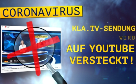 YouTube „versteckt“ Gegenstimmen: Nicht selten brandmarken Systemmedien aufrüttelnde Fakten und kritische Fragen mit Schlagworten wie „Fake News“. Neu ist: Unliebsame Sendungen werden in der Suche einfach nicht mehr angezeigt. Da hilft nur eines: Originale verbreiten und selbst zum Mainstream werden! Jetzt z.B. mit ++ Kla.TV‘s exklusivem Flyer zum Thema Coronavirus. Aufrubar unter: www.kla.tv/corona-flyer[weiterlesen]