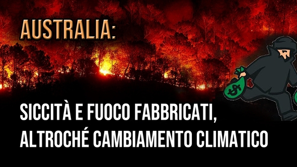 Da giugno 2019 fino a marzo 2020, nell'Australia infuriavano incendi estremi. Gli incendi hanno bruciato circa 186.000 km², ciò corrisponde circa al 60% della superficie dell’Italia. Questi incendi sono descritti come un evento senza precedenti nella storia degli incendi boschivi australiani. I media del mainstream hanno presentato i giganteschi incendi boschivi australiani con filmati apocalittici come una presunta conseguenza del cambiamento climatico causato dall'uomo, gettando così olio nel fuoco del dibattito già parecchio acceso sul clima. Tuttavia, nel video seguente Max Igan della piattaforma internet investigativa australiana "The Crow House", rivela connessioni completamente diverse con il suo scioccante video "Australia – Wake Up Or Die! --- Ciao ragazzi, ho pensato di aggiornarvi sulla situazione qui in Australia. L'Australia è attualmente in preda a una tempesta di fuoco di proporzioni infernali, un mega-incendio sulla scala della Greater Sydney, che si sta muovendo verso Sydney mentre sono seduto qui. E questo, mentre ci muoviamo inesorabilmente verso una massiccia ondata di calore. Siamo alle prese con quella che probabilmente è la peggiore siccità che abbiamo mai visto in questo paese. La linea ufficiale adottata è che il cambiamento climatico e il riscaldamento globale ne siano la causa. Questo è ciò che il governo ha incentivato tramite i media. ma non è vero, gente. In realtà, questa situazione è stata deliberatamente prodotta dal governo. E vi mostrerò il perché. Il fatto è che in questo paese i fiumi si stanno prosciugando, che il ruscello davanti a casa mia è prosciugato, che tutti i ruscelli della zona sono prosciugati. Nei miei colloqui dell'altro ieri sulla Gold Coast ho parlato con la gente. Qualcuno ha detto che anche i ruscelli di Bundaberg si stanno prosciugando e la gente aspetta che arrivi la pioggia e crede che quando arriverà la pioggia i ruscelli si riempiranno di nuovo e noi usciremo dalla scarsità d'acqua. Ma non è vero, gente, perché qui tutti i ruscelli nascono da sorgenti. Tutti i corsi d'acqua avrebbero dovuto scorrere ininterrottamente, ma si sono fermati perché l'acqua ha smesso di uscire dal Territorio del Nord. Il grande bacino artesiano che fornisce acqua a questo paese ha smesso di inviare acqua alle altre grandi falde acquifere perché, come ho detto, l'acqua del Territorio del Nord ha smesso di scorrere. Potete vedere come funziona in questo paese guardando questa mappa. Lì abbiamo questa zona quassù, sopra la quale vanno i monsoni massicci, e questo alimenta questa regione qui, il Grande Bacino Artesiano. E questo a sua volta alimenta i nostri fiumi, i torrenti, le falde acquifere e le infiltrazioni, mentre i fiumi qui scorrono nelle altre zone. Il percolato di questi fiumi riempie le falde acquifere e porta l'acqua in questa regione dove vivo, che è più o meno qui. Conosco la regione costiera. Tutto passa attraverso le falde acquifere del grande bacino artesiano, dai bacini monsonici a nord. E funziona come un orologio ogni anno. Anche l'anno scorso. Non c'è motivo per cui il Grande Bacino Artesiano debba prosciugarsi. Non c'è motivo per cui i ruscelli qui intorno debbano prosciugarsi, non importa quanto scarse siano le precipitazioni. Perché questi torrenti e fiumi sono sempre scorsi ininterrottamente. Il bacino dei Murray Darling era sempre pieno. E ciò che sorprende è che in questo momento il fiume Murray è pieno d'acqua, ma l'acqua non arriva fino a noi. Infatti, il fiume Murray ha così tanta acqua che i banchi di sabbia sono stati inondati e le foreste su entrambe le sponde del fiume sono state distrutte perché queste foreste non sono abituate a queste insolite quantità d'acqua che ora ricevono. Ma il terreno agricolo a sud di esso non riceve l'acqua perché viene tutta sottratta al fiume. Perché tutta l'acqua viene deviata verso dighe private di proprietà di grandi aziende agricole e minerarie che utilizzano l'acqua per i loro scopi privati. Ora vi mostro un video di un canale a cui dovreste abbonarvi anche voi se siete australiani. Si chiama "Lie ability made". Queste persone fanno davvero quello che possono per fare la differenza e portano molte informazioni molto, molto utili al pubblico australiano. Quindi andate anche su questo canale e guardate questo video, così posso mostrarvi cosa sta succedendo e perché i ruscelli sono asciutti. 1.500 km del più grande sistema fluviale è secco e questo non ha nulla a che fare con la siccità. Lo sfruttamento delle zone alluvionali significa che dove c'erano le zone alluvionali, hanno eliminato tutti gli alberi, hanno spianato il terreno e l'hanno circondato con argini per evitare che l'acqua si riversi nei fiumi. La chiamano raccolta. Io lo chiamo "abusare di un fiume". Benvenuti a vedere ciò che resta del Darling River. Venite qui con i vostri figli, lasciateli correre su e giù per il fiume e guardate 50 milioni di molluschi, gamberi, pesci, tutti morti. L'intero ecosistema è crollato e gli alberi stanno morendo. Guardate l'eucalipto rosso dietro di noi che sta ancora resistendo - ma fino a quando? Dobbiamo cambiare qualcosa in questo paese. Gli australiani devono svegliarsi e combattere. Ragazzi, questo è quello che sta succedendo con il sistema fluviale in questo paese. Ecco perché non c'è acqua nei fiumi e ci sono anche queste dighe private costruite da enormi società, di cui almeno venti o trenta nel bacino Murray-Darling. E anche i contribuenti hanno pagato per questo. In realtà abbiamo pagato per queste dighe che ci stanno rubando l'acqua. C'è un altro video che dovreste vedere, di cui metterò un link nella descrizione qui sotto, intitolato "Corruption Fraud Australia". Basta guardarlo e capirete come fanno. Come ho detto, c'è un enorme fuoco che si muove verso Sidney in questo momento. E mi è stato detto da chi vive dove sono avvenuti questi incendi, che in seguito il governo locale ha abbattuto tutti gli alberi rimasti, pres