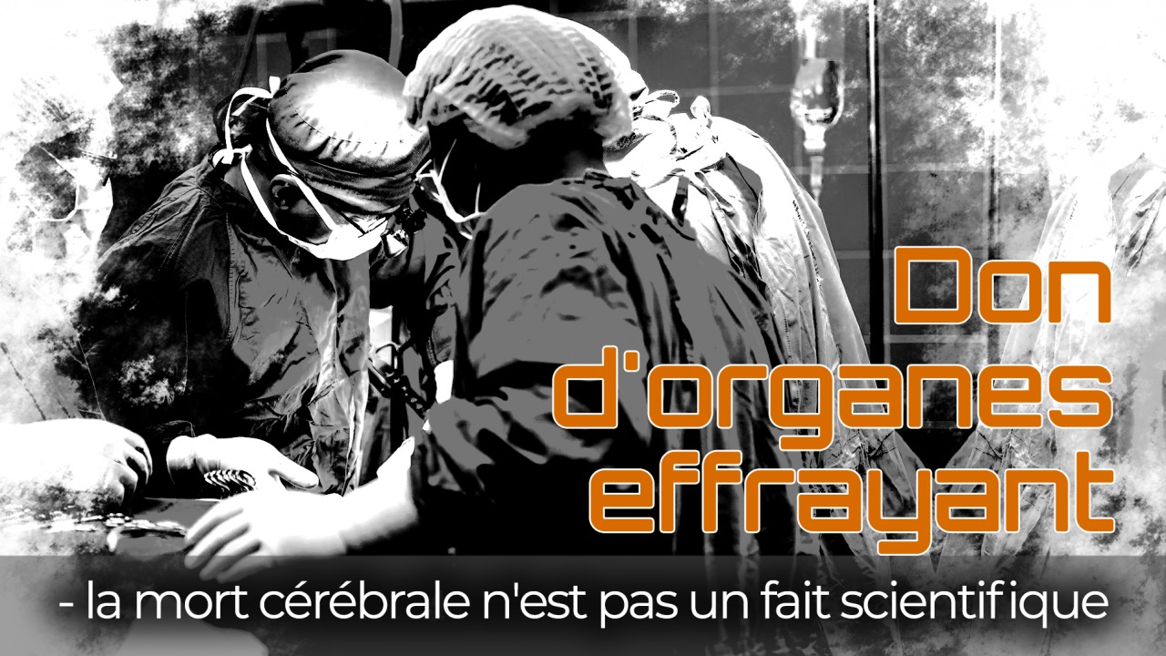 Dans le cadre d'un don d'organe, on prélève sur le « mort qui est vivant » son cœur vivant et qui bat et les organes vivants. Et cela nécessite même une anesthésie, car les « morts » réagissent à la douleur de l'opération de la même manière que les vivants. Le pouls s'accélère, la tension artérielle varie, des hormones sont libérées, des mouvements involontaires se produisent. C’est effrayant pour les médecins. C'est pourquoi le prétendu « cadavre » est parfois mis sous anesthésie générale, en Suisse, c'est même obligatoire. Les femmes en état de mort cérébrale peuvent accoucher. Les hommes en état de mort cérébrale peuvent avoir des érections. Les hommes en état de mort cérébrale peuvent réagir à des stimuli extérieurs, les mouvements des bras et des jambes sont possibles « La mort cérébrale n'est pas un fait scientifique. Ce n'est pas un diagnostic médical. » Dr Robert Truog, pédiatre américain « La mort cérébrale n'existe pas, c'est une invention de la médecine de transplantation. » Franko Rest, chercheur allemand sur la mort et l’éthique En 1996 le Dr Zieger a rapporté à la commission sanitaire du parlement allemand que les patients dans le coma réagissent clairement aux événements extérieurs et aux stimuli sociaux, comme par exemple les visites de la famille. Le corps des morts cérébraux est chaud, leur métabolisme fonctionne. Les morts cérébraux combattent les infections et les blessures, en ayant par exemple de la fièvre. Afin qu’ils ne meurent pas, on doit nourrir, soigner, surveiller, tester les morts cérébraux et leur donner des médicaments. Les morts cérébraux sont réanimés si nécessaire. N'est-ce pas une contradiction dans les termes : réanimer des morts ? Le critère de la mort cérébrale a été introduit en 1968 expressément dans le but d'obtenir des organes. Pour les adieux des proches, le personnel infirmier a pour consigne de faire des injections de décontractants musculaires « aux morts agités » afin qu'ils ne bougent pas lors des adieux. « Le prélèvement d'organes sur une personne encore vivante est un homicide punissable par la loi. La mort cérébrale a été déclarée mort humaine, afin d’obtenir sans se rendre punissables, des organes vivants qui peuvent se conserver. » Prof. Klaus Peter Jörns, directeur émérite de l'Institut de religion-sociologie de la Faculté de théologie de l'Université Humboldt de Berlin « Le prélèvement d'organes est un meurtre », Dr David Evans, cardiologue et conférencier britannique Lorsqu’on incise le corps du cou à la symphyse pubienne alors que le cœur bat, la pression artérielle, le rythme cardiaque et l'adrénaline augmentent. Des rougeurs du visage, des rougeurs étendues sur la peau et de la transpiration peuvent également apparaître. Lors d’interventions chirurgicales normales, ces signes sont considérés comme des réactions de douleur, mais pas s’il s’agit de morts cérébraux. « La mort cérébrale est une aberration, ce n'est pas la mort d'un être humain. Aussi embarrassant que cela puisse paraître, on peut le prouver logiquement à tous les niveaux. » Prof. Dr. Dörner « En tant que créature unique et indissociable, l'homme est représenté non seulement par son cerveau mais aussi par son corps. Mais 97 % de ce corps est encore en vie au moment de la mort cérébrale. » Prof. Linus Geisler, cardiologue Les médicaments contre le rejet de nouveaux organes coûtent plusieurs milliers d'euros par an et par patient. Après une transplantation, un suivi médical à vie (!), des séjours fréquents à l'hôpital et des médicaments aux nombreux effets secondaires (médicaments dits immunosuppresseurs) sont nécessaires. Les médicaments, qui peuvent coûter plusieurs milliers d'euros par mois, désactivent le système immunitaire afin que l'organisme ne rejette pas l'organe étranger. Rien qu'à partir de cela, on peut soupçonner que la transplantation d'organes est contraire à la nature humaine : le corps se défend souvent si fortement contre cette lourde intervention que le rejet de l'organe étranger est plus important pour lui que la préservation de la vie de son propre corps. La prise de médicaments immunosuppresseurs augmente considérablement le risque général d'infection. La personne devient sensible aux plus petites infections, champignons, bactéries et il y a une baisse de la coagulation du sang. La cortisone contenue dans le médicament provoque un gonflement du corps. Il existe un grand nombre de cas non signalés de receveurs d'organes qui ont un désir de mort inexplicable. Le marché des seuls immunosuppresseurs, qui suppriment le rejet de l'organe étranger par le receveur, représente un chiffre d’affaire de 1,6 milliard d'euros par an. En 2011, les tarifs forfaitaires des transplantations auraient été compris entre 18 000 et 215 000 euros, selon l'organe et le type d’intervention. Par exemple, un foie coûte entre 98 000 et 130 000 dollars, un cœur entre 130 000 et 160 000 dollars. « Le marché des greffes et des produits pharmaceutiques se chiffre en milliards d’euros. » Richard Fuchs, auteur de livres spécialisés 60 % des morts cérébraux présumés pourraient reprendre conscience : - McKinley a été déclaré en état de mort cérébrale et ses parents ont décidé de faire don de ses organes. Mais soudain, le garçon de 13 ans a bougé sa main, puis ses pieds, le garçon en état de mort cérébrale se réveille de son coma. - Angelle Liebi, qui a été déclarée en état de mort cérébrale, s'est également réveillée de son coma et s’est rétablie. Elle aussi a senti quand les infirmières l’ont touchée pour lui enfoncer une aiguille et ont incisé sa gorge pour poser une canule. Elle a entendu les autres parler d’elle : les médecins, qui semblaient convaincus qu'elle était en état de mort cérébrale, et qui conseillaient à son mari de s'occuper d