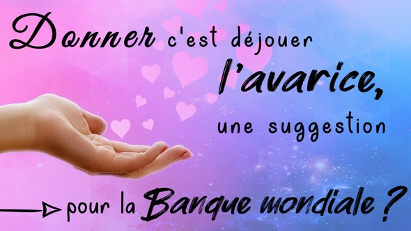 Le Fonds monétaire international (FMI), une branche de la Banque mondiale, n'accorde ses prêts aux pays pauvres qu’en contrepartie d’importantes concessions. Les pays doivent livrer leurs sources de richesses, telles que les ressources minières, en eau, les terres, les infrastructures, etc... aux griffes de grandes multinationales. Ainsi, la quasi-totalité de la richesse nationale tombe entre les mains d’un petit nombre de grandes entreprises étrangères ; la population du pays en ressort avec quasiment rien. Au mieux, elle peut s'offrir aux entreprises comme une main-d'œuvre bon marché. Et cela dans son propre pays ! Le fossé entre riches et pauvres se creuse ainsi partout dans le monde. Celui qui a beaucoup d'argent est enclin à en amasser toujours plus. Mais il y a aussi une toute autre façon de faire, comme on peut le voir avec l'exemple de Mason Wartman : Wartman, ancien banquier prospère de Wall Street, s'est rendu compte que gagner de l'argent pour lui tout seul ne donnait pas de sens à la vie, alors il s’est orienté vers des œuvres de bienfaisance : des clients au grand cœur financent de façon désintéressée les repas que Wartman produit dans son restaurant et qu’il donne gratuitement à des centaines de sans-abri chaque semaine. Et encore un autre exemple qui fait école : Cofondateur et PDG de Gravity Payments, Dan Price, a drastiquement réduit son salaire de 1 million à 70 000 dollars par an et l’a partagé avec ses 120 employés, de sorte que tous reçoivent le même revenu annuel de 70 000 dollars. Dan Price a noté que cela a considérablement augmenté sa joie de vivre. Son exemple a incité de nombreux hommes d’affaires à l’imiter. Qui ou quoi exactement empêche la Banque mondiale de faire de même ? « L’homme est noble, secourable et bon », cette affirmation de Goethe est découverte à nouveau malgré toutes les forces qui tirent vers le bas. « Il y a beaucoup de froid entre les hommes parce que nous n’osons pas nous donner aussi chaleureusement que nous le sommes. » Albert Schweitzer, médecin franco-allemand, philosophe, théologien, musicologue et pacifiste