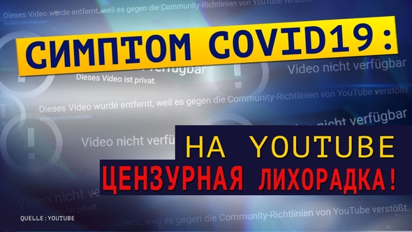 В нынешнем кризисе с коронавирусом становится еще более очевидным, что YouTube использует все средства, чтобы противодействовать свободному освещению событий и, прежде всего, подвергает цензуре мнения независимых и известных экспертов! YouTube нагло использует свою монополию в секторе онлайн-видео, чтобы пресечь критические голоса экспертов, связанные с коронавирусом! Все, что противоречит продиктованному системной прессой мнению, «скрывается» или жестко удаляется! Генеральный директор YouTube Сьюзен Войжитски (Susan Wojcicki) в интервью телеканалу CNN сказала: «Все, что противоречит рекомендациям Всемирной организации здравоохранения, является нарушением наших правил».