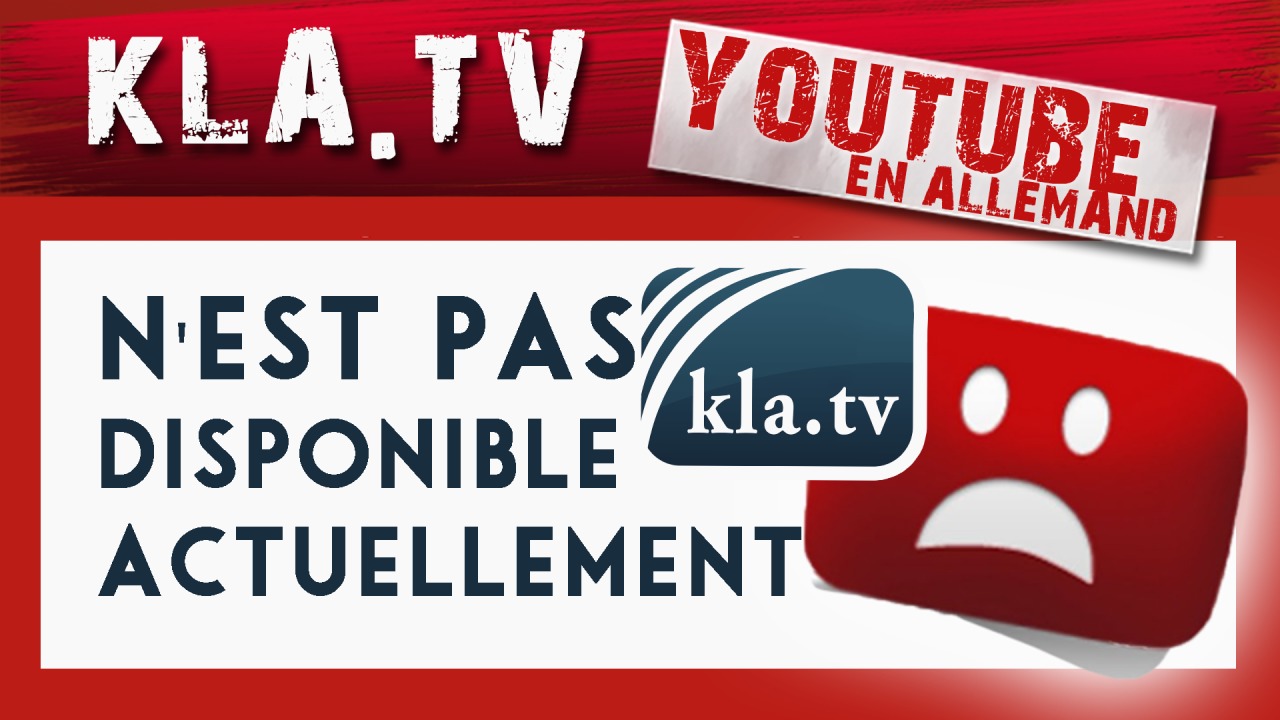 YouTube censure plus de 126 186 vidéos par jour. Quiconque met en doute l'opinion des autorités ou de l'OMS est irrévocablement expulsé de YouTube. Après plusieurs avertissements, notre chaîne allemande sur YouTube n'est actuellement plus disponible. Nous vous tiendrons informés de la suite. Pendant que YouTube se détruit lui-même, des millions d'utilisateurs vont voir ailleurs : Vous aussi, allez voir notre site original et dès aujourd'hui invitez vos amis de YouTube à s'abonner à la newsletter gratuite ! www.kla.tv/fr → Bouton vert en haut à droite « Newsletter ».