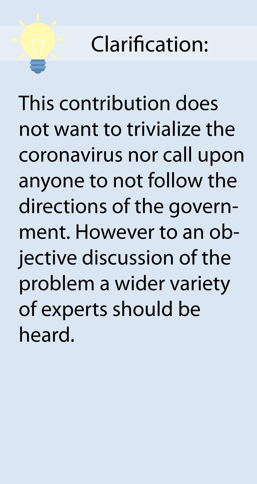 Conclusion: Since 80 % of people infected with corona are only very slightly clinically ill, we must, according to Prof. Kamradt, "[...] be very sure that a vaccine does not have any harmful side ef-fects." Because harmful side effects could cause more deaths than the disease itself.