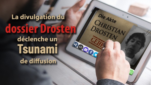 visionnée plus de 900 000 fois en moins de 72 heures ! Ce documentaire sur Christian Drosten révèle à quel point cette personne, clé centrale de la crise actuelle du Coronavirus, n’est pas digne de confiance. Mais comment est-ce possible que cette vidéo ce soit propagée plus vite que même le virus le plus dangereux est capable de le faire ? De plus en plus de personnes sont contaminées par un tout nouveau virus celui-ci est sain et rend lucide : il s’agit du virus du « dévoilement et de la diffusion » ! Le « nombre d'infections » de ce virus dépasse de façon exponentielle le nombre d'infections présumées du coronavirus ! Apparemment le peuple en a assez de la « pensée unique » et des répétitions martelées des médias du mainstream ! Depuis des mois maintenant, un fil rouge épais se dégage de l'ensemble de la crise du coronavirus : L’étouffement et le discrédit de toutes les voix dissidentes par les médias de masse ! Depuis des mois, il n'y a pas eu de reportage de facto critiquant le gouvernement dans tous les médias imprimés, les chaînes de télévision et les stations de radio. Cela suggère que ces médias de masse ont dû être mis en conformité. Cela étouffe dans l'œuf tout dialogue public sérieux. Comme ils gardent toujours le dossier Drosten secret, la population a maintenant pris les choses en main en le diffusant activement ! L'aspect décisif de cette diffusion est expliqué comme suit par Ivo Sasek - le fondateur de kla.tv - dans son émission « Les méthodes STASI 2.0 » : « Je conclus maintenant en transmettant quelques solutions indispensables à tous ceux qui se soucient réellement d’atteindre et de réveiller la majorité encore ignorante. Ce que je propose en ce qui concerne Kla.TV, peut bien sûr être appliqué à tous les autres lanceurs d‘alerte: La première solution est la plus importante pour moi : Veuillez concentrer votre action de dévoilement sur toutes les personnes qui ne sont pas encore informées ou pas encore éclairées. Ne continuez pas à perdre votre temps parmi ceux qui vous ressemblent. Avant de discuter de quelque chose pour le simple plaisir, diffusez de toutes les manières et par tous les moyens encore disponibles aussi nos émissions les plus importantes, et cela à ceux qui sont encore ignorants, c'est le mot-clé principal. Toutes les icônes sous la vidéo peuvent vous aider à la diffusion de ces vidéos. Par exemple, au moment où je préparais cette émission, j’ai entendu aux actualités grand public que Twitter allait désormais prendre des mesures plus fermes contre les « lanceurs d’alerte ». Vous voyez, le compte à rebours a commencé, et je vais vous dire ceci : appuyez autant que possible sur l’accélérateur tant que vous le pouvez encore. Nos icônes de diffusion vous y aideront.» Chers téléspectateurs, Il s'agit d'une « diffusion d'autodéfense » du dossier tenu secret Christian Drosten ! Par conséquent, diffusez-la dans votre environnement, par exemple à vos collègues de travail, à vos amis sportifs, à vos amis d'école, à vos voisins et aussi à vos proches. Informez également votre maire, vos conseillers municipaux et vos députés ! Laissez-vous infecter par ce nouveau virus « du dévoilement et de la propagation »! Vous pouvez ainsi contribuer activement à ce que toutes les questions non résolues autour de la crise de corona fassent l'objet d'un débat public, et surtout ouvert et non censuré. Pour vous aider, nous allons afficher le lien de diffusion du « fichier tenu secret Christian Drosten » et vous fournir également une courte bande-annonce d'une minute.