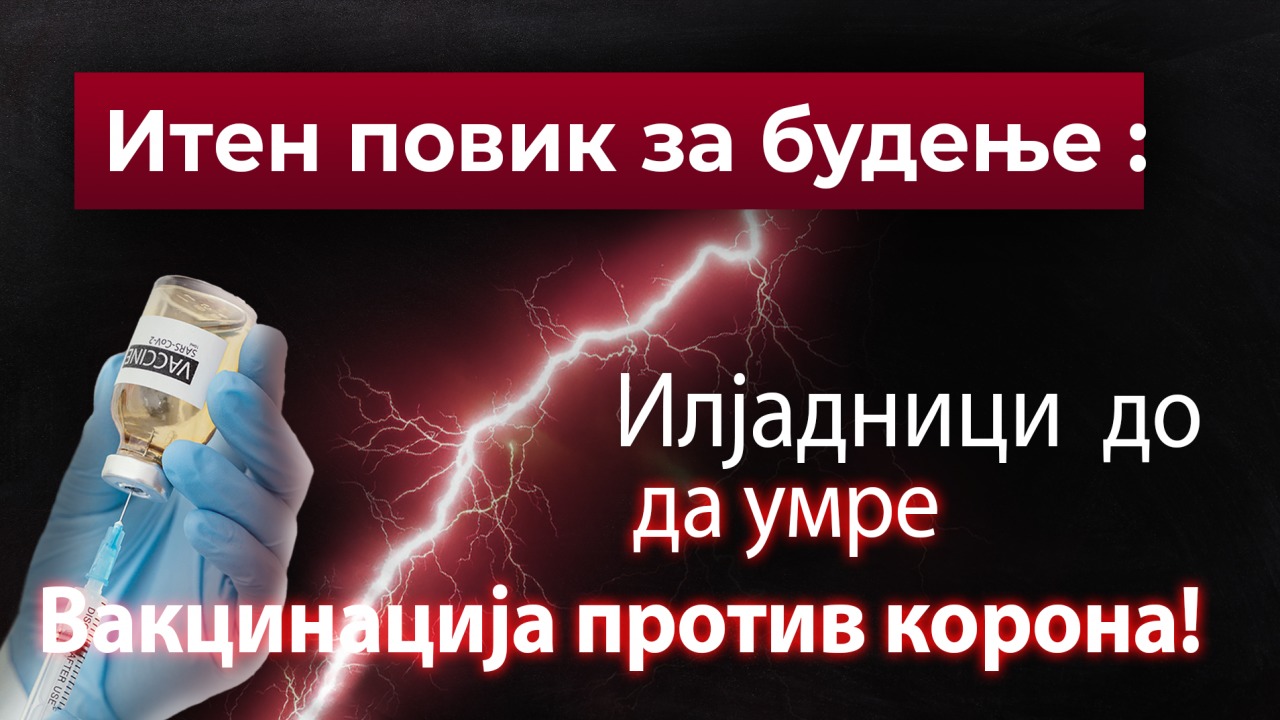„Итен повик за будење: Илјадници умираат по вакцинирањето на корона!“ „Затоа правиме преглед на 3-месечна пракса за вакцинација против корона во оваа програма. 16 од 70 жители починаа по вакцинирањето! Секој 4-ти жител починал по вакцинирањето! Леверкузен: 18 мртви по вакцинирањето! Повеќе шокантни извештаи ... ... стапка на смртност по вакцинирање што е далеку повеќе од сто пати поголема отколку во претходните години од почетокот на вакцинациите за корона! 49-годишниот учител умира неколку дена по вакцинацијата од корона. 244 Британци починаа кратко време откако беа вакцинирани. Затоа, овој неодговорен експеримент врз целото човештво мора веднаш да се запре! Помогнете да се осигуриме дека овој итен повик за будење ќе стигне до сите “.