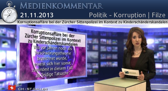 Guten Abend liebe Zuschauerinnen und Zuschauer, wir begrüssen Sie zu unserem heutigen Medienkommentar zur Korruptionsaffäre rund um die Zürcher Sittenpolizei. In dieser Affäre werden mittlerweilen gegen elf – und nicht wie bis zuerst publik wurde gegen fünf - Mitglieder der Fachabteilung Milieu/Sexualdelikte Strafverfahren geführt. Dieser Fachabteilung gehören 17 Personen an. Den elf Sittenpolizisten wird vorgeworfen, vertrauliche Informationen an Personen aus dem Milieu weitergeleitet zu haben, sie vor Polizeikontrollen gewarnt und Verzeigungen unterlassen zu haben. Als Gegenleistung sollen die Tatverdächtigen in den Lokalitäten des «Chili's» sexuelle Dienstleistungen sowie Verköstigung gratis erhalten haben. Da liegt also ein offensichtlicher Fall vor, in dem die Täter von den Ordnungshütern geschützt und begünstigt werden. Was vor Jahren noch als Verschwörungstheorie bezeichnet wurde, erweist sich hier somit, zumindest in diesem Fall, als "leidige Tatsache". Und aufgrund dessen, dass fast täglich weitere Beschuldigte hinzukommen, fragt man sich, ob dies nur ein Einzelfall ist oder vielleicht eben doch die berühmte Spitze des Eisberges? Wenn mittlerweilen die als Verschwörungstheorie bezeichnete Versprühung von Chemtrails von Abgeordneten als Realität und somit als wirkliche Verschwörung entlarvt wird (siehe K-TV-Sendung vom 10.12.2012), könnte es da sein, dass die Korruption in Justiz und Politik, gerade im Zusammenhang mit sexuellen Abgleichungen, doch auch keine blosse Theorie ist? All die immer mehr ans Licht kommenden Kinderschänderskandale, oft auch im Zusammenhang mit rituellen Missbräuchen und Morden, (beachten Sie dazu auch die Medienkommentar-Serie vom 10.9.2013 sowie die Sendungen über die Fälle Dutroux und Jimmy Savile) haben eines unmissverständlich zutage gebracht: Die hohen Regierungskreise, die darin verwickelt waren und sind, wurden weder von der Polizei noch von der Justiz je angetastet, es sei denn, sie erfüllten die Wünsche der wirklichen Machthaber hinter ihnen nicht. Könnte das auch der Grund dafür sein, dass es noch nie mehr diktatorisch gefärbte Gesetze gab, die von Politikern gegen den ausdrücklich und lautstark erklärten Willen der Bevölkerung durchgesetzt wurden, als im letzten Jahrzehnt? Kommen all diese umstrittenen Gesetze, weil die Politiker erpressbar sind? Das sind Fragen, auf die es noch keine klaren Antworten gibt, doch viele kritische Zeitgenossen können dieser Befürchtung nicht mehr ausweichen. Sollten Sie, liebe Zuschauerinnen und Zuschauer, Kenntnis haben von belegbaren Fakten zu sogenannten "Verschwörungstheorien", die sich dadurch als Tatsache erweisen, dann senden Sie Ihre Meldung an K-TV zur Veröffentlichung. Wir danken Ihnen und wünschen einen guten Abend.