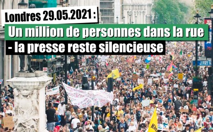 Le 29 mai 2021, l'une des plus grandes manifestations contre les restrictions du Covid a eu lieu à Londres : un mouvement de masse grandiose avec un million de participants, une diversité colorée de jeunes et de vieux, de blancs et de noirs, unis pour un seul et même souhait : la liberté ! La liberté ! De longues rues remplies de personnes pacifiques portant des drapeaux colorés et des pancartes écrites à la main ont défilé dans la capitale de l'Angleterre. L'atmosphère dans la rue était pleine de gaieté et de joie. Un appel unanime a été lancé pour que les faits réels soient révélés et que les restrictions à cause du Covid soient arrêtées. La presse, cependant, a une fois de plus confirmé sa ré-putation de presse menteuse : en Allemagne, t-online a parlé de « quelques centaines » de manifestants dans la capitale anglaise. Ni l'ARD ni la ZDF ne diffu-sent d'images de cette manifestation de masse en mouvement. Ainsi, le courant dominant fonctionne de manière bien connue par désinformation ou omission. Mais ce qui a été mis dans l'atmosphère à Londres ne peut être simplement nié par désinformation ou omission. Nous vous emmenons maintenant dans l’ambiance des enregistrements en direct de Londres.