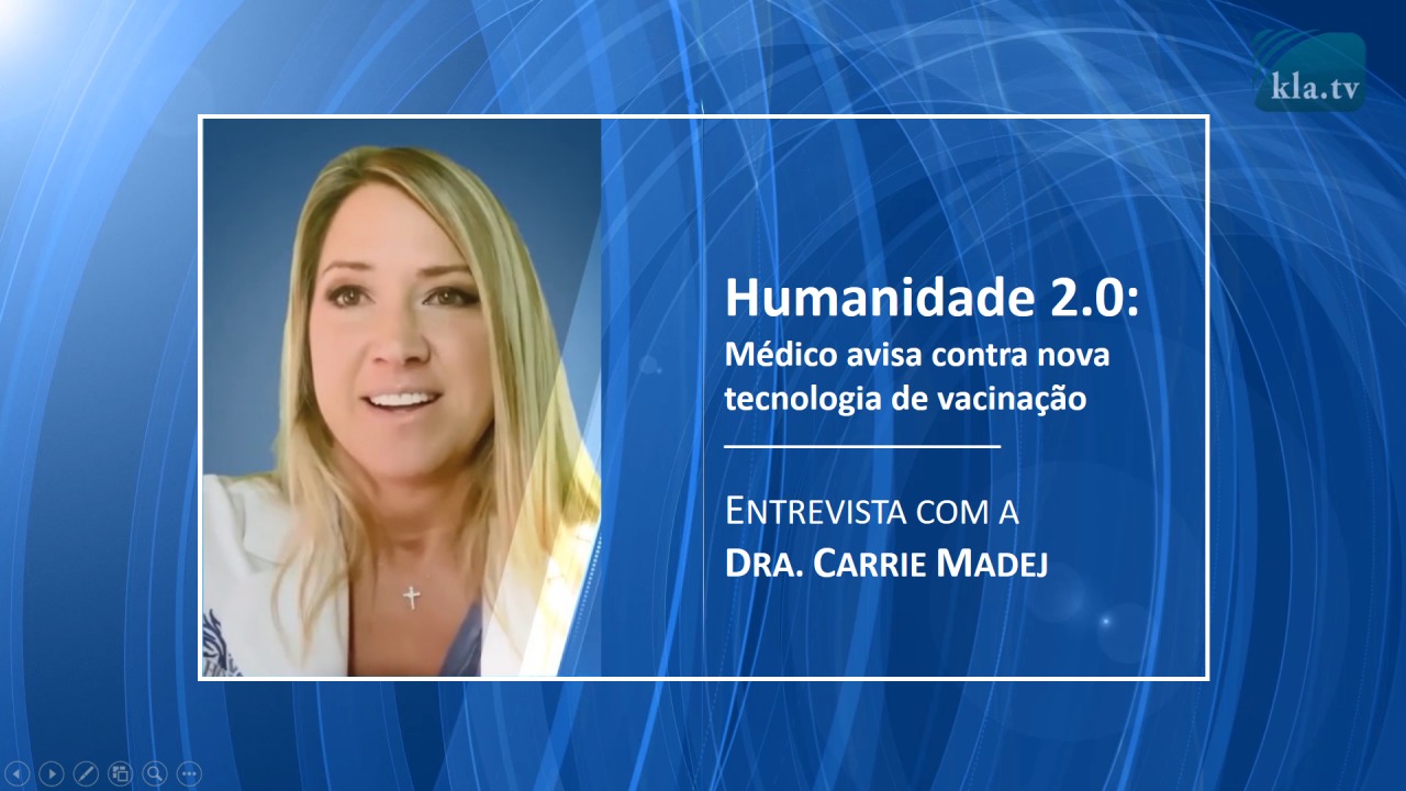 A Dra. Carrie Madej, médica internista e osteopata, dirigiu duas clínicas no estado da Geórgia, EUA, durante 19 anos. Desde muito cedo, ficou fascinada pelas vacinas, especialmente pela vacina contra o tétano fortemente anunciada. Ficou espantada quando soube que nenhum de seus colegas tivera encontrado alguma vez ou visto um "caso de tétano". Isto tirou-lhe a paz de espírito, o que a levou a fazer algumas pesquisas. Para sua surpresa, descobriu que a vacina continha um aditivo para a esterilização de mulheres. O seu cepticismo em relação às vacinas cresceu e a Dra. Madej começou a explorar cada vez mais o campo das vacinas. A sua investigação aprofundada levou-a a descobrir novas tecnologias nas novas vacinas COVID-19, e ela fez soar o alarme. A Dra. Madej tornou-se denunciante, disponibilizando os seus conhecimentos a uma vasta população através de palestras, entrevistas e material vídeo. A sua chamada de atenção para o mundo inteiro "Human 2.0: Wake Up Call To The World", encontrou uma rápida propagação na Internet – até que chegou a ser vítima da censura do YouTube & Co. A Dra. Madej não teme em continuar a expor incansavelmente. Actualmente clarifica o objectivo dos governos em conjunto com a indústria farmacêutica e gigantes tecnológicos como Google e Microsoft, etc., de submeter toda a população mundial à vacinação o mais rapidamente possível. O nosso correspondente da Kla.TV conseguiu ganhar uma entrevista com a Dra. Carrie Madej. O que ela revela nesta entrevista é ao mesmo tempo alarmante e assustador. Mas veja por si próprio que tecnologias e métodos estão a ser introduzidos em conjunto com a vacina Covid-19. A suposição de que uma tremenda batalha está ocorrendo, que afectará toda a humanidade também não pode ser rejeitado com base nas suas descobertas.