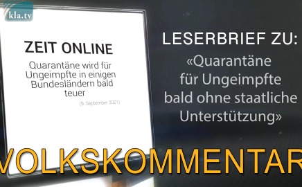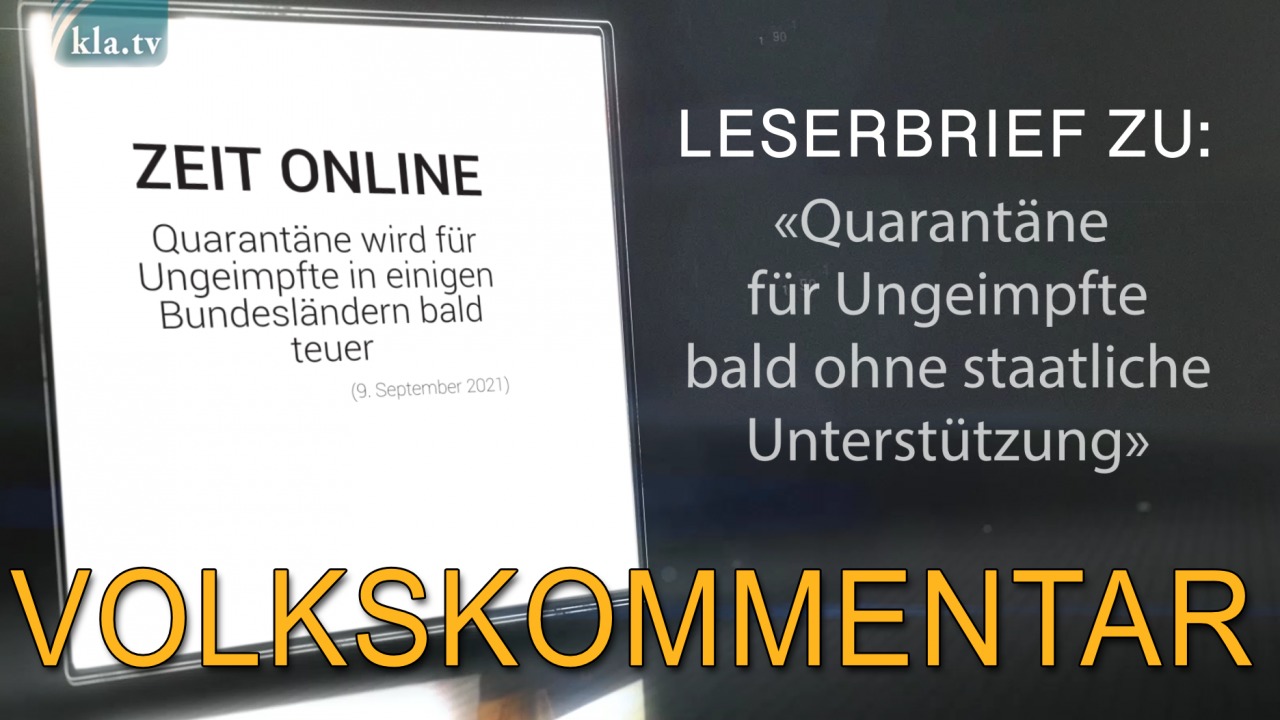 Am 9. September 2021 berichteten die ZEIT und andere Medien, dass einige Bundesländer zeitnah damit starten würden, Menschen ohne Impfung im Fall einer angeordneten Quarantäne die staatliche Unterstützung bei einem Verdienstausfall zu verweigern. Gesundheitsminister Spahn unterstützt diesen Vorschlag. „Er sehe“ – so die ZEIT – „nicht ein, dass andere auf Dauer dafür zahlen sollten, wenn sich Menschen trotz ausreichender Impfstoffe in Deutschland nicht impfen ließen.“ Kla.TV wurde dazu ein Leserbrief eingesandt, der auf ZEIT Online veröffentlicht und Gesundheitsminister Spahn zugesandt wurde: „Sehr geehrter Herr Spahn, sehr geehrte Ministerpräsidierende von Baden-Württemberg, Rheinland-Pfalz, Hessen, Mecklenburg-Vorpommern und Bayern, ich gratuliere Ihnen zu diesem überfälligen Schritt, das Risiko und die Kosten einer COVID-Erkrankung auf die Impfunwilligen umzulegen. Schon seit Jahren bin ich der Meinung, dass dieses Prinzip der Verursacherhaftung im Gesundheitswesen umgesetzt werden muss. Wie Sie sicher wissen, sind die großen Kostentreiber im Gesundheitssystem im Wesentlichen die Folgen von Übergewicht und ungesunder Lebensweise. Daher schlage ich vor, nur mal als ersten Schritt, die Behandlungen und Medikamente für Diabetes Typ II, Hüft-, Knie- und Fußoperationen von Übergewichtigen sowie Tumor-OPs von Rauchern oder Fleischessern nicht mehr von der gesetzlichen Krankenkasse bezahlen zu lassen. Diese Menschen belasten das Gesundheitssystem auf dem Rücken der Vernünftigen und Maßvollen, wie auch die Impfunwilligen jetzt das Gesundheitssystem fast zum Erliegen bringen. Weiterhin sollte ein Zuckerkonsum von mehr als 10 kg pro Jahr die Einstellung von Zahnarztleistungen zur Folge haben. Schluss mit dieser elenden Freiwilligkeit, unter der dann alle zu leiden haben! Die dafür notwendige Überwachung könnte man leicht über eine Zusammenführung von ohnehin vorhandenen Daten, z.B. der Deutschland Card oder von Payback, realisieren und in ein Sozialpunktesystem wie in China integrieren. Die notwendigen Gesetzesänderungen bekommen Sie sicher in den Griff. Am besten koppeln Sie die Abstimmung auch mit der nächsten Tierschutzverordnung. Der derzeitige Ethikrat hat sicher auch nichts dagegen.“