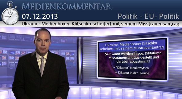 Janukowytsch setzte damit ein Zeichen, dass die ukrainische Regierung an keinen Unruhen interessiert ist. Das hinderte allerdings das EU-U-Boot Klitschko nicht daran, Mitte der Woche trotzdem ein Misstrauensvotum gegen Janukowytsch zu stellen. Mit diesem Misstrauensvotum, das den Rücktritt Janukowytschs erzeugen sollte, hat sich Klitschko jedoch einen schmerzhaften Aufwärtshaken eingefangen, da dieses im ukrainischen Parlament abgelehnt wurde.