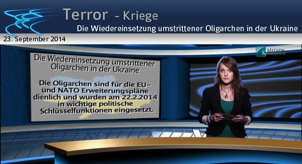 In den 1990er Jahren erschienen die Oligarchen auf der Bildfläche der ehemaligen Teilrepubliken der Sowjetunion, zumeist in Russland und der Ukraine. Es waren gut vernetzte Geschäftsleute, die mit fast nichts begannen und in kurzer Zeit extrem reich geworden sind, meist durch Schwarzmarktaktivitäten und Korruption.Wie die Wortherkunft andeutet, ist ein Oligarch „einer von wenigen Herrschenden“ eines Landes. In der Ukraine gehören den Oligarchen die größten Banken; sie kontrollieren die Nahrungsmittel- und Rohstoffindustrie; ihnen gehören alle wichtigen Nachrichtenagenturen und Medien, mit denen sie die Meinung im Land prägen, und sie üben politischen Einfluss aus. Die Protestbewegung auf dem Majdan war ursprünglich gegen diese Oligarchen gerichtet, die für das große soziale Elend verantwortlich gemacht wurden. Deshalb war bis vor kurzem jeder in der Ukraine (und in der Welt) der festen Überzeugung, die Oligarchen seien das Problem der Ukraine. Da sie jedoch für die EU- und NATO-Erweiterungspläne dienlich sind, wurden sie nach der Absetzung von Janukowitsch am 22.2.2014 in die wichtigen politischen Schlüsselfunktionen eingesetzt und belegen sie immer noch …Unabhängige Medien hätten dies nicht geschluckt.