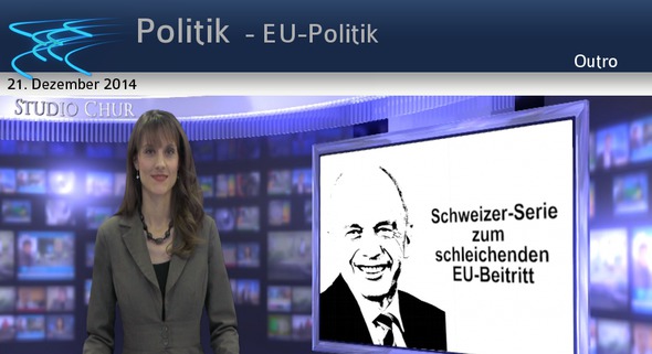 Hiermit sind wir am Ende unserer Schweizer Sendereihe. Ich hoffe, diese war für Sie aufschlussreich und Sie konnten einen Einblick in die Problematik und die Folgen des schleichenden EU Beitritts erhalten. Wenn auch Sie Ihren Teil zur Volksaufklärung leisten möchten, dann verbreiten Sie diese Sendungen weiter an alle Ihre Freunde und Bekannten. Ich schliesse mit einem Ausspruch von Bundesrat Ueli Maurer von der SVP-Delegiertenversammlung vom 25.Oktober 2014. „Wahrscheinlich gehört es zu den dauernden Aufgaben aller Bürgerinnen und Bürger unseres kleinen Landes, dass wir uns immer wieder der Einflussnahme durch große Staaten oder mächtige Institutionen entgegenstellen müssen. Und dass wir versuchen, unsere Souveränität wieder zu erlangen, wo wir diese aufgegeben haben. Beginnen Sie damit, indem Sie die Begriffspanscherei durchschauen. Das ist nicht schwierig, es braucht nur etwas gesunden Menschenverstand. Prüfen Sie internationale Bindungen jeweils mit einer ganz einfachen Frage: Können wir noch selbst bestimmen oder bestimmen andere über uns?" Verehrte Zuschauerinnen und Zuschauer. Wenn es um die Freiheit und Souveränität unseres Landes geht ist diese Aussage von hoher Wichtigkeit es lohnt sich dieses Thema weiter zu beobachten und mit zu verfolgen. Ich bedanke mich für ihre mithilfe und wünsche Ihnen einen guten Abend.