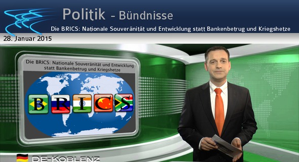 Herzlich Willkommen aus dem Studio Koblenz. Freiheit, Souveraenitaet, Rechtsstaatlichkeit und Toleranz zaehlen mitunter zu den Grundwerten des Westens und "Westliche Grundwerte verteidigt man am besten, indem man sie selbst einhaelt" Wenn westliche Medien aber z.B. ueber den Zusammenschluss der BRICS-Laender, das sind Brasilien, Russland, Indien, China und Suedafrika berichten, dann wird dieser allerdings meist als Bedrohung fuer den Westen und seine Werte dargestellt.Tatsaechlich aber ist naemlich der Zusammenschluss der BRICS eine historische Chance fuer die gesamte Welt zur friedlichen Kooperation, zur Entwicklung aller Menschen und um die Kriege zu beenden.Denn diese Nationen gruenden ihr System auf die Achtung nationaler Souveraenitaet und auf die Verbesserung der Lebensbedingungen ihrer Bevoelkerung - Ganz im Sinne der westlichen sogenannten GrundwerteDazu ein Beispiel, welche positiven Veraenderungen diese neue Denkweise fuer die Bevoelkerung hat: Am 12. November hat eine hochrangige Delegation der indischen Regierung beim dritten deutsch-indischen Investmentforum in Berlin angekuendigt, dass Indien fuer die naechsten zehn Jahre jeden Monat eine Million Arbeitsplaetze schaffen wird. Wie dies von Statten gehen soll erfahren Sie beim Studium unserer Quellen.