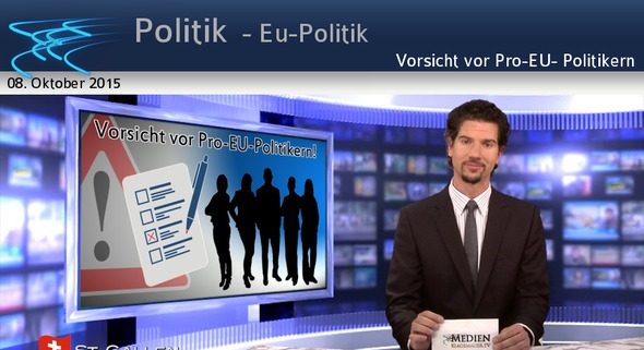 Herzlich willkommen und Vielen Dank dass Sie sich bei uns informieren. Auch ich berichte in Anbetracht der bevorstehenden Wahlen am Wochenende vom 18. Oktober und hoffe, dass die Fakten dieser Sendung Ihnen die Entscheidung bei den Wahlen vereinfachen kann. Die Neue europäische Bewegung Schweiz (kurz Nebs) kontaktierte die Kandidaten für stattfindenden eidgenössischen Wahlen. Dabei sichern sie all jenen ihre Unterstützung zu, die den Bruch der Schweiz mit der EU verhindern wollen. Diese National- und Ständeratskandidaten können sich für die Wahlen mit dem „Label Europa“ kennzeichnen. Diese Wahlhilfe der Nebs zeichnet die Kandidaten aus, die sich in einer Deklaration bereit erklären, sich im Rahem ihrer politischen Arbeit für eine EU-Mitgliedschaft der Schweiz zu engagieren. Jener EU, die die institutionelle Einbindung der Schweiz als unabdingbare Voraussetzung für weitere bilaterale Verhandlungen erklärt. Diese institutionelle Einbindung mit dem Rahmenvertrag verlangt von der Schweiz, alle Beschlüsse und Gesetze der EU automatisch zu übernehmen und die Oberhoheit des EU-Gerichtshofes anzuerkennen. Hier nun einige amtierende Nationalräte, die an vorderster Stelle in der Nebs tätig sind: Martin Naef (SP/ZH), Christa Markwalder (FDP/BE), Aline Trede (Grüne/BE), Doris Fiala (FDP/ZH) und Francine Joh-Calame (Die Grünen/NE). Weitere Kandidierende, die das Nebs-Ziel EU-Beitritt verfolgen, finden Sie unter www.wahlen15.eu/de. Allen Gegnern eines EU-Beitritts der Schweiz wird empfohlen, diese Pro-EU-Kandidaten nicht zu wählen. Bedenken Sie bei Ihrer Entscheidung am 18. Oktober die Gefahren, welche Gefahren mit der EU zusammen hängen. Vielen Dank und ich gebe weiter an unser Nachbarstudio.