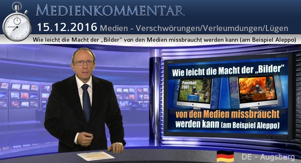 Seit Beginn des Krieges in Syrien im Jahr 2011 war die einst stolze Stadt Aleppo geteilt und teilweise unter Kontrolle terroristischer Kämpfer. In den vergangenen Wochen konnte die syrische Armee bedeutende Stadtviertel zurückerobern und steht kurz vor der endgültigen Befreiung der Stadt. Während die Menschen in den befreiten Gebieten Ost-Aleppos aufatmen, verbreiten westliche Medien Berichte über schlimmste Gräueltaten durch Assad-Truppen und die russische Militärunterstützung. Während der letzten Sitzung des UN-Sicherheitsrates behauptete der britische UN-Botschafter Matthew Rycroft Folgendes: Assads Kräfte – unterstützt von Russland und dem Iran – hätten „den Horror ein weiteres Mal neu definiert“, von Belagerung seien sie „zu Gemetzel übergegangen“. Der Sprecher des russischen Verteidigungsministeriums, Igor Konaschenkow, wies die Vorwürfe am 14. Dezember zurück. Konaschenkow sagte wörtlich: „Die syrischen Truppen sind aktiv, um die östlichen Teile Aleppos zu befreien. Diese Operation ist erfolgreich und wird mit Blick auf die Zivilbevölkerung in humaner Weise durchgeführt. […] Alle Videos und Bilder, die angebliche russische Bombardierungen, Exekutionen (durch Pro-Regierungskräfte) und ähnliches zeigen und auf die sich hochrangige westliche Politiker berufen, sind Inszenierungen. Sie wurden von darauf spezialisierten Filmteams der Terrorkämpfer produziert.“ Alles nur Ausreden? Können Bilder, Filmaufnahmen und seriös aufgemachte Berichterstattungen tatsächlich lügen? Die schlichte Antwort lautet: Und ob! Dazu ein Beispiel: In einer dokumentarischen Reportage aus dem Jahr 2005 begleitet ein deutsches Filmteam einen jungen Mann aus Süddeutschland auf seiner Reise in eine abgelegene Militärkaserne in Russland. Dort nimmt er am sogenannten »Igra su Smertju«, dem »Spiel mit dem Tod« teil. Dabei geht es darum, dass sich die jungen Mitspieler gegenseitig mit Schüssen auf die Schutzwesten zu Fall bringen. Doch die Situation im Wald eskaliert, ein Spieler schießt wild um sich, es gibt 2 Tote und 4 Verletzte. Handelt es sich hier um eine wahre oder erfundene Geschichte? Ein großer Teil der Zuschauer, die seit dem 19. Juli 2014 den Film auf YouTube gesehen haben, sind darauf hereingefallen. Die Reportage war der erste Teil eines Fernseh-Films im Rahmen einer Masterarbeit an der Hochschule Offenburg. Im zweiten Teil des Films wird diese Scheinwirklichkeit als solche entlarvt und das Lügengebilde demontiert. Die vermeintlich dokumentarischen Bilder sind filmisch inszeniert und bauen unter dem Deckmantel der Seriosität eine Scheinwirklichkeit auf – ohne Wissen des Zuschauers. Die Masterarbeit trägt den Namen „MANIPULATION DOKUMENTARISCHER BILDER UND INSZENIERUNG VON SCHEINWIRKLICHKEITEN AM BEISPIEL EINES FERNSEH-FEATURES“ und kann unter eingeblendetem Link eingesehen werden. Es geht um die Macht der Bilder und darum, wie leicht sie missbraucht werden kann. Wobei mit „Bilder“ nicht nur visuelle Bilder gemeint sind. Auch Radioreportagen oder Zeitungsberichte können „Bilder“ vermitteln, „um erfundene Geschichten glaubhaft zu präsentieren, oder, den Zuschauer zu beeinflussen“. Die Masterarbeit zeigt auf, wie leicht manipuliert werden kann: – indem bestimmte Ausschnitte gezeigt bzw. ausgelassen werden. Daraus entstehe unser „Bild der Welt“; – indem sich allein mit der Aufnahmetechnik der Eindruck einer seriösen Berichterstattung schaffen lässt, ganz gleich, wie absurd das Thema ist; – indem Bilder bewusst Vorurteile aufgreifen, um mit gesellschaftlichen Klischees zu spielen. Kein einziges Bild wurde in Russland gedreht, und trotzdem wurde eine russische Geschichte erzählt. – Auch sei mit Hilfe der digitalen Technik das Manipulieren von Bildern einfach geworden. Selbst haarsträubende Fälschungen blieben oft unbemerkt. Harold Evans, ein bekannter britisch-amerikanischer Journalist, brachte es auf den Punkt: »Die Kamera kann nicht lügen, aber sie kann ein Mittel zur Unwahrheit sein.« All diese Beispiele zeigen, dass die Zuschauer sehr leicht getäuscht und ganze Nationen dämonisiert werden können. Deshalb sind Pauschalverurteilungen und Berichte über angebliche Greueltaten, die einseitig auf die syrische, russische oder andere Regierungen abzielen, mit höchster Vorsicht zu betrachten. Gegenstimmen wie auf Klagemauer.TV und anderen alternativen Medien sind einzuholen und zu vergleichen. Anhand der eigenen Intuition gilt es, sich eigene, unvoreingenommene „Bilder“ zu machen. In dem eingeblendeten Link kann nun das hier erwähnte, sogenannte Fernseh-Feature gesehen werden.