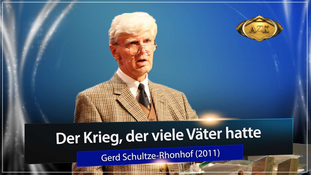 Gerd Schultze-Rhonhof, • geboren im Mai 1939 in Weimar • ein Ex-Generalmajor. • Er ist Verfasser der Dokumentation „Ein unvermeidlicher Krieg? Der Weg zum 1. September 1939“ sowie Autor mehrerer Bücher. Sein Anliegen ist den gymnasialen Geschichtsunterricht fundamental zu erneuern. Als jahrzehntelanger Kommandeur einer Panzergrenadierbrigade besitzt er Fachkompetenz in militärischen Zusammenhängen und kriegerischen Auseinandersetzungen. Seine Geschichtsschreibung unterscheidet sich jedoch von der öffentlichen. Er widerspricht ihr aber mit einer Weisheit, die man einfach gehört haben muss. Sehen Sie nun seinen Vortrag mit dem Titel "Der Krieg, der viele Väter hatte" von der 7. AZK am 29. Oktober 2011.