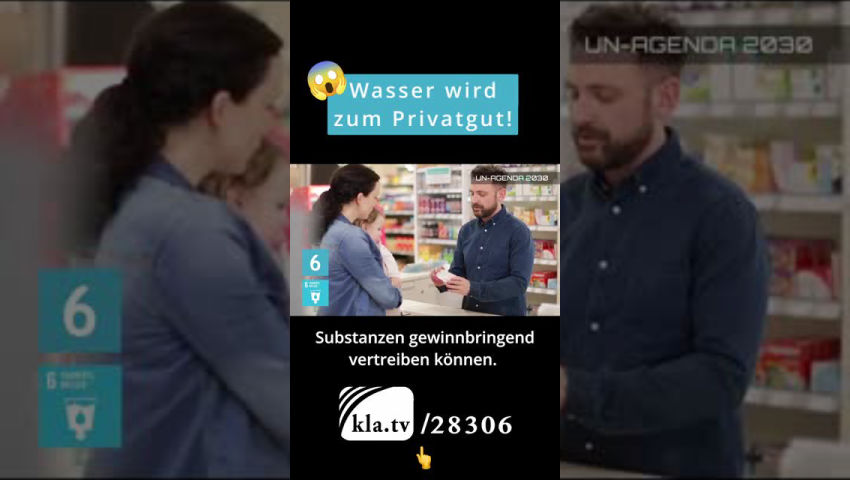 Die Wasserressourcen sollen zentralistisch verwaltet werden. Staaten werden dazu gedrängt, ihre Wasserinfrastruktur zu privatisieren und sich in Abhängigkeit von Konzernen zu begeben, die das Wasser dann überteuert an die Menschen verkaufen können. Durch die Hoheit über das Wasser hat man auch die Gesundheit der Menschen vollends in Händen. Denn Leitungswasser wird vielerorts bereits mit Chemikalien wie Fluorid angereichert. Dies könnte ausgeweitet werden, was zu vielen chronischen Krankheits- und Vergiftungssymptomen führen kann, die der Pharmaindustrie direkt in die Karten spielen, da sie so ihre symptomunterdrückenden Substanzen gewinnbringend vertreiben können.